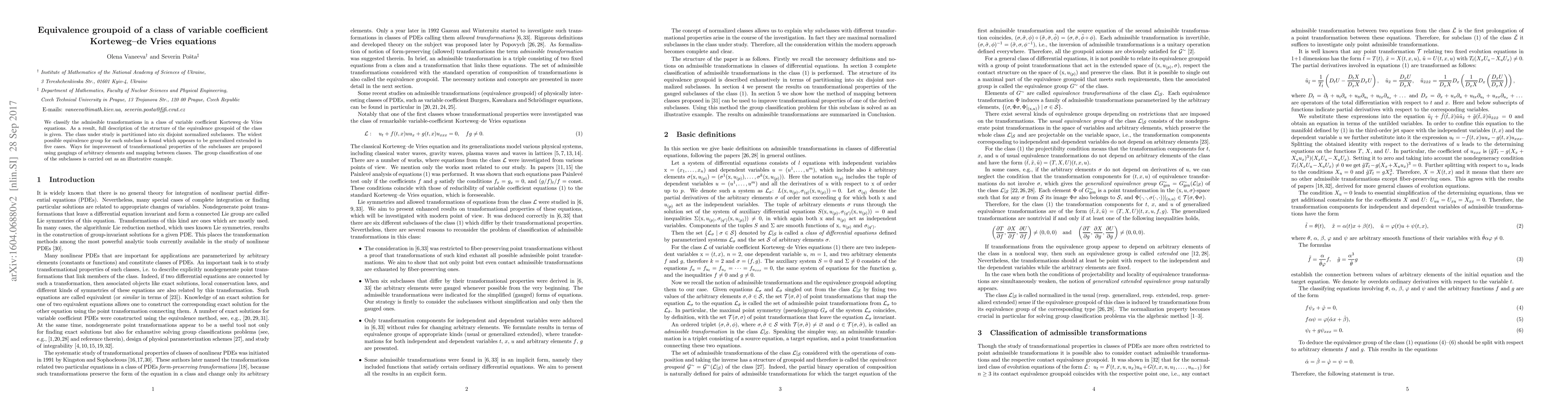 This paper classifies the admissible transformations for a class of variable coefficient Korteweg-de Vries equations, detailing the structure of their equivalence groupoid and partitioning the class into six subclasses. It proposes methods for improving transformational properties through gaugings and mappings, and provides an illustrative example of subgroup classification.