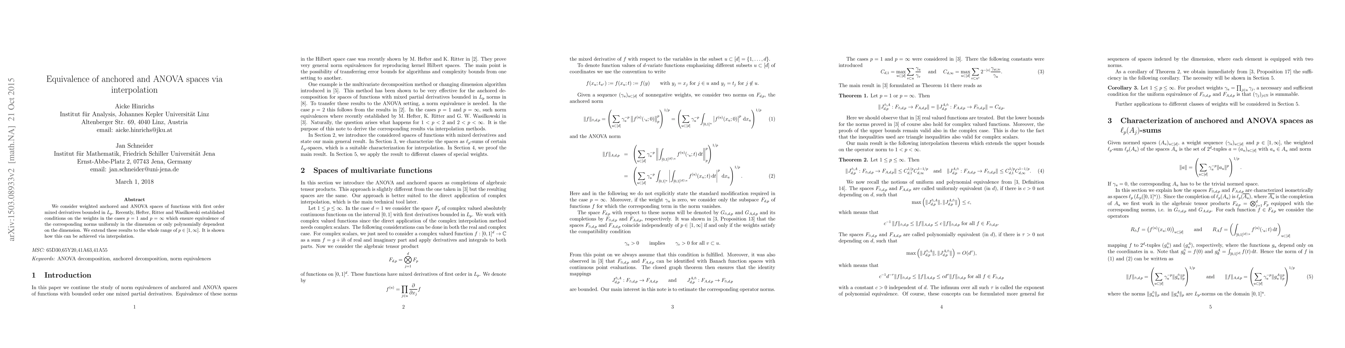 This research paper establishes equivalence of anchored and ANOVA spaces via interpolation for a range of p-values from 1 to infinity, ensuring the corresponding norms are comparable uniformly or polynomially dependent on dimension.