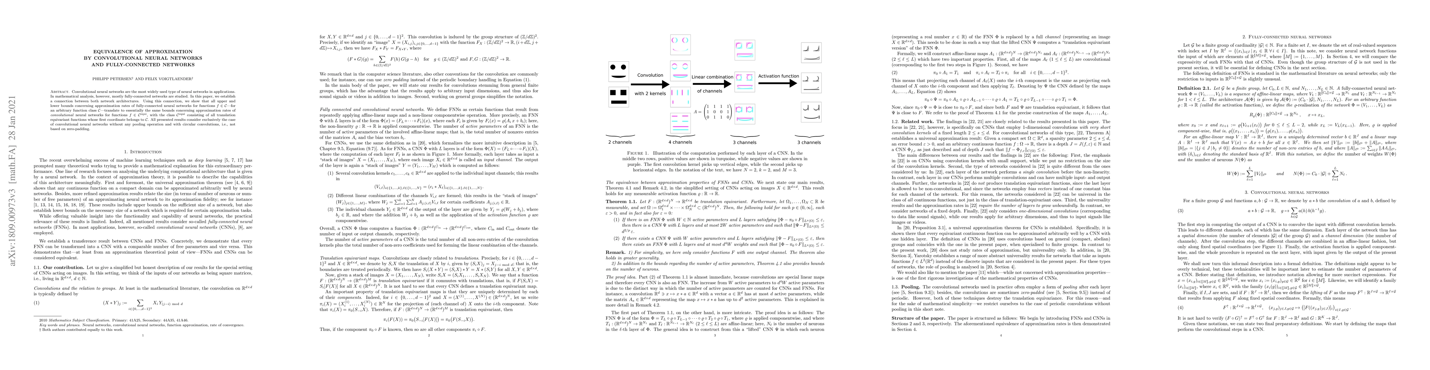 The paper establishes a connection between convolutional neural networks (CNNs) and fully-connected neural networks (FNNs) by showing that approximation bounds for FNNs translate to CNNs, specifically for functions in the class ${\mathcal{C}^{equi}}$ of translation equivariant functions.