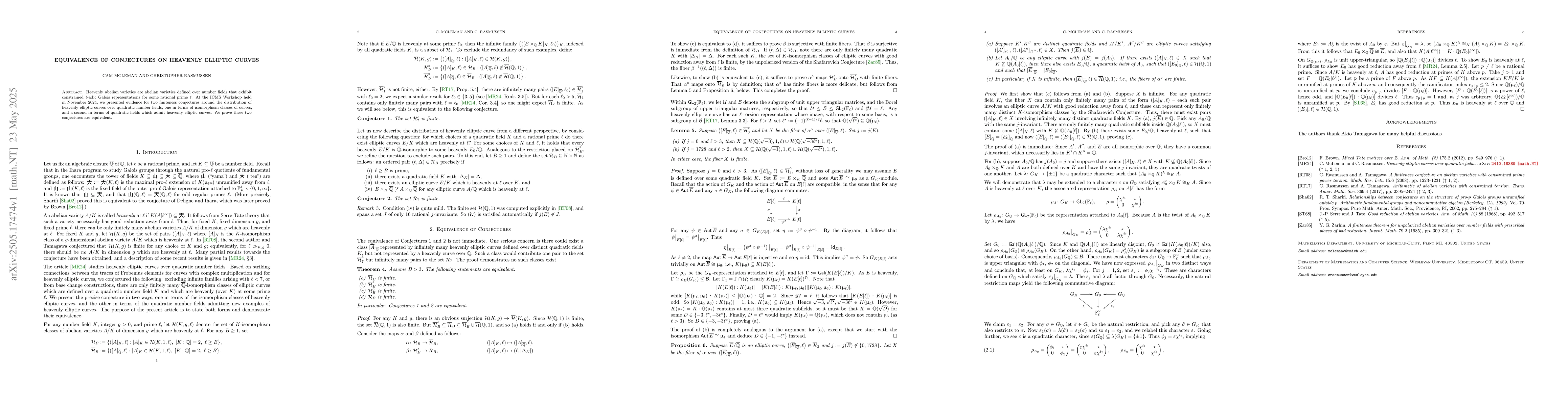 Established the equivalence of conjectures concerning the finiteness of heavenly elliptic curves in quadratic number fields.