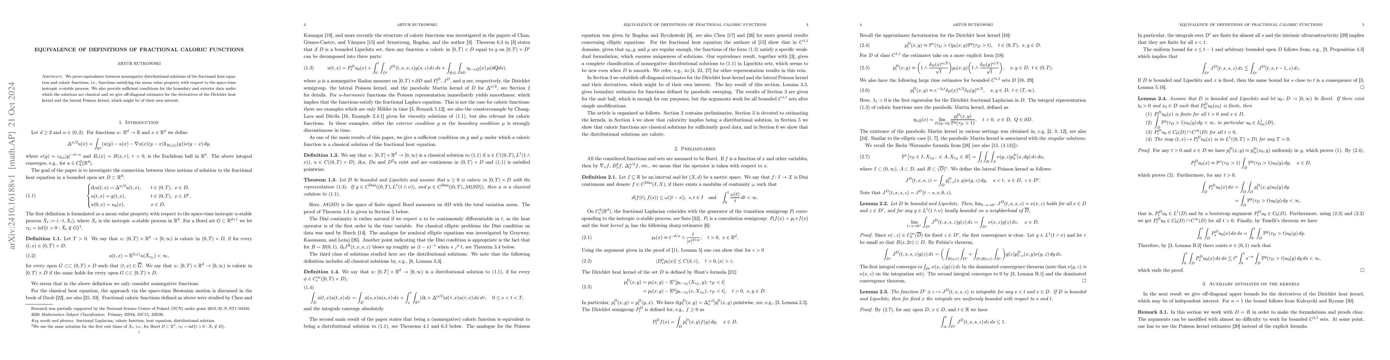 This paper establishes the equivalence between nonnegative distributional solutions of the fractional heat equation and caloric functions. It also provides conditions ensuring classical solutions and offers off-diagonal estimates for derivatives of relevant kernels.