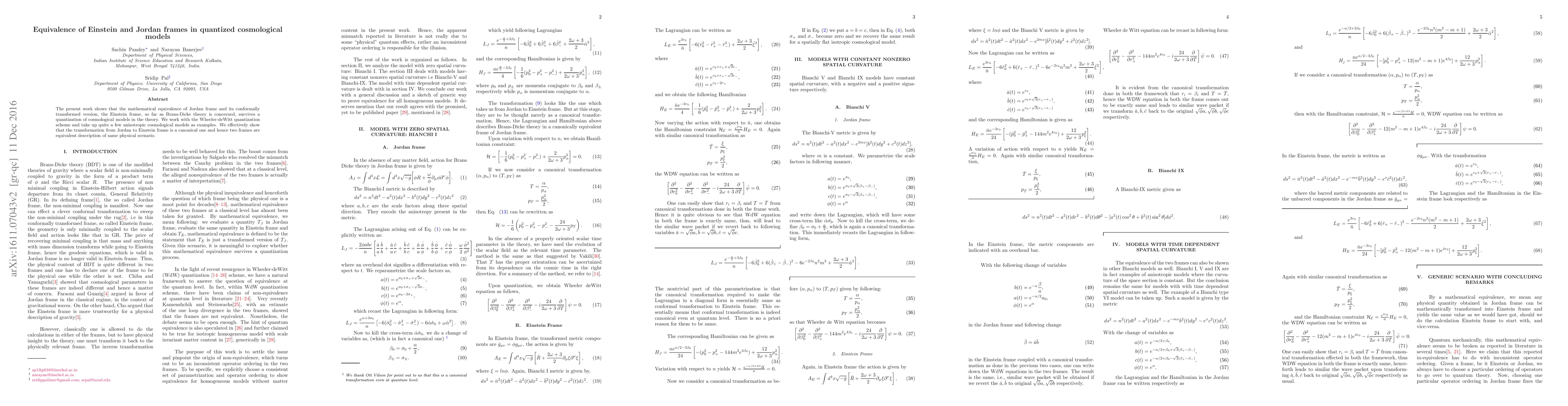 This paper demonstrates that the equivalence between Jordan and Einstein frames in Brans-Dicke theory persists after quantization using the Wheeler-deWitt scheme, showing that the transformation is canonical and thus both frames describe the same physical scenarios in cosmological models.