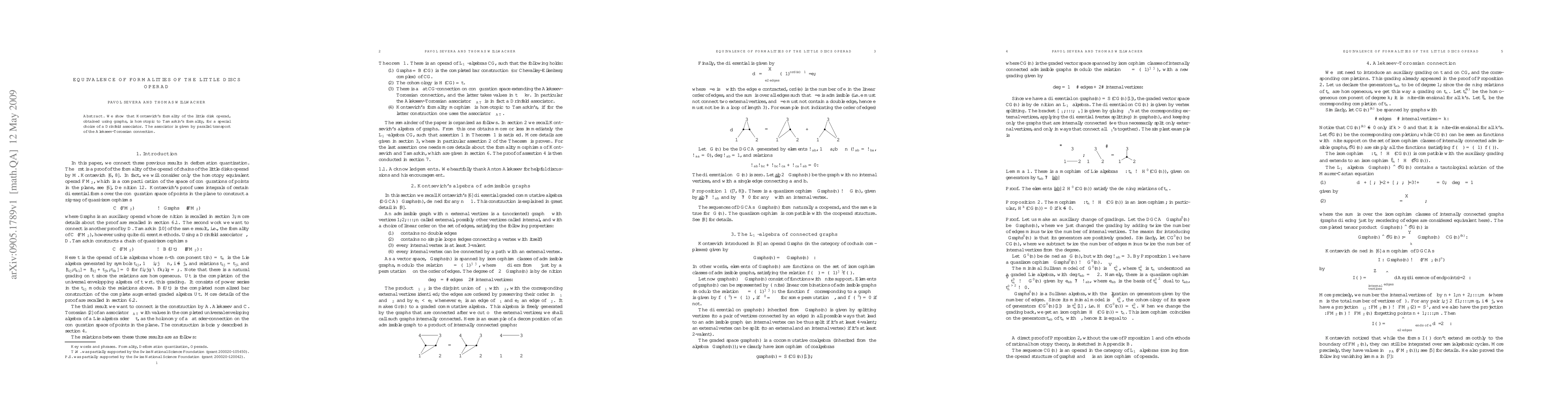 Two formalizations of the little disk operad, derived via different methods by Kontsevich and Tamarkin, are shown to be homotopically equivalent through a specific Drinfeld associator linked to the Alekseev-Torossian connection.