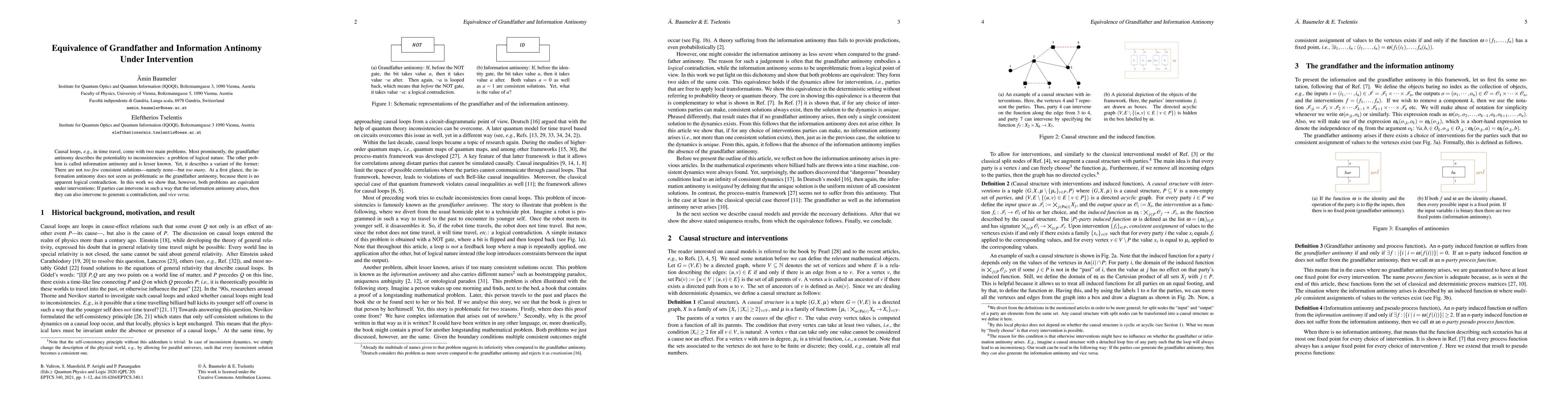 Causal loops, e.g., in time travel, come with two main problems. Most prominently, the grandfather antinomy describes the potentiality to inconsistencies: a problem of logical nature. The other problem is called information antinomy and is lesser known. Yet, it describes a variant of the former: There are not too few consistent solutions -- namely none -- but too many. At a first glance, the information antinomy does not seem as problematic as the grandfather antinomy, because there is no apparent logical contradiction. In this work we show that, however, both problems are equivalent under interventions: If parties can intervene in such a way that the information antinomy arises, then they can also intervene to generate a contradiction, and vice versa.