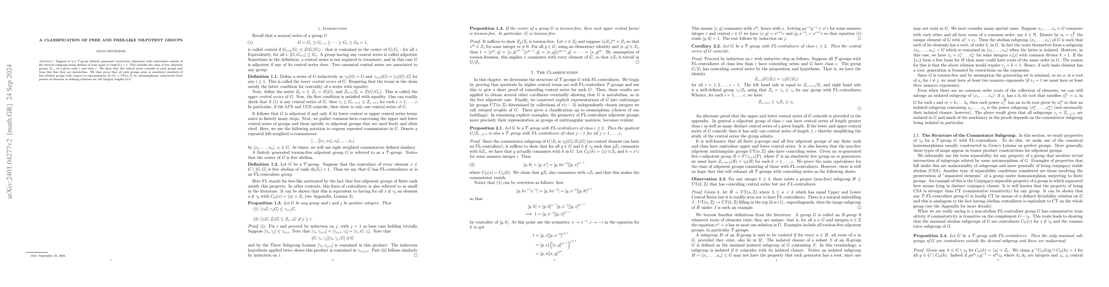 This paper proves the equivalence of the Lower and Upper Central Series for finitely generated torsion-free nilpotent groups whose centralizers resemble those in free nilpotent groups. It also provides applications, including an indecomposability theorem and a generalization of Davis's subgroup distortion criterion.