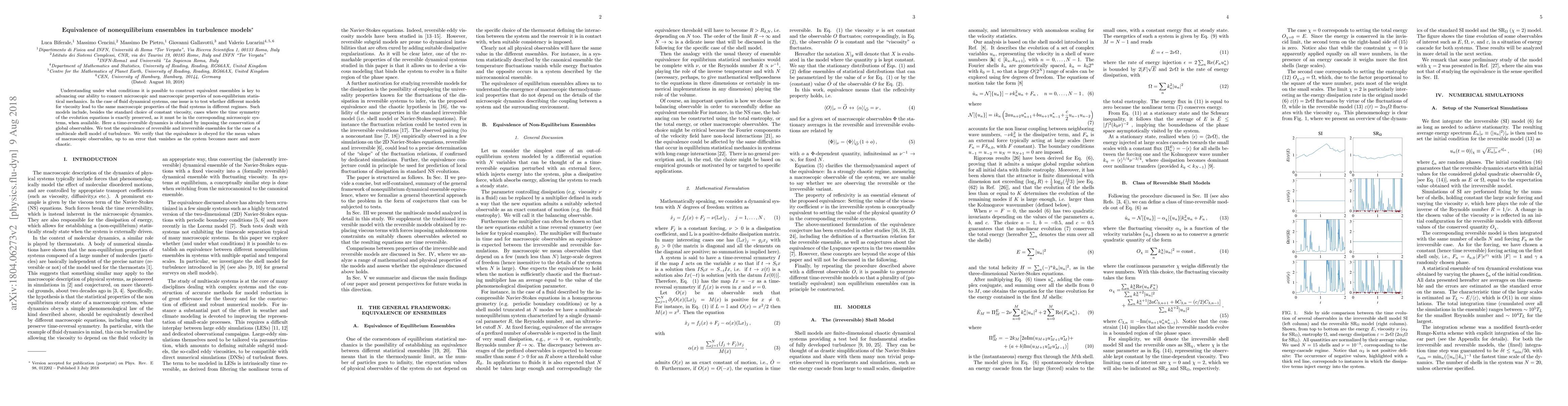 This paper investigates the equivalence of different nonequilibrium ensembles in turbulence models, specifically testing whether reversible and irreversible models yield the same macroscopic properties. The study finds that these ensembles are equivalent for mean values of observables, with discrepancies diminishing as the system's chaos increases.