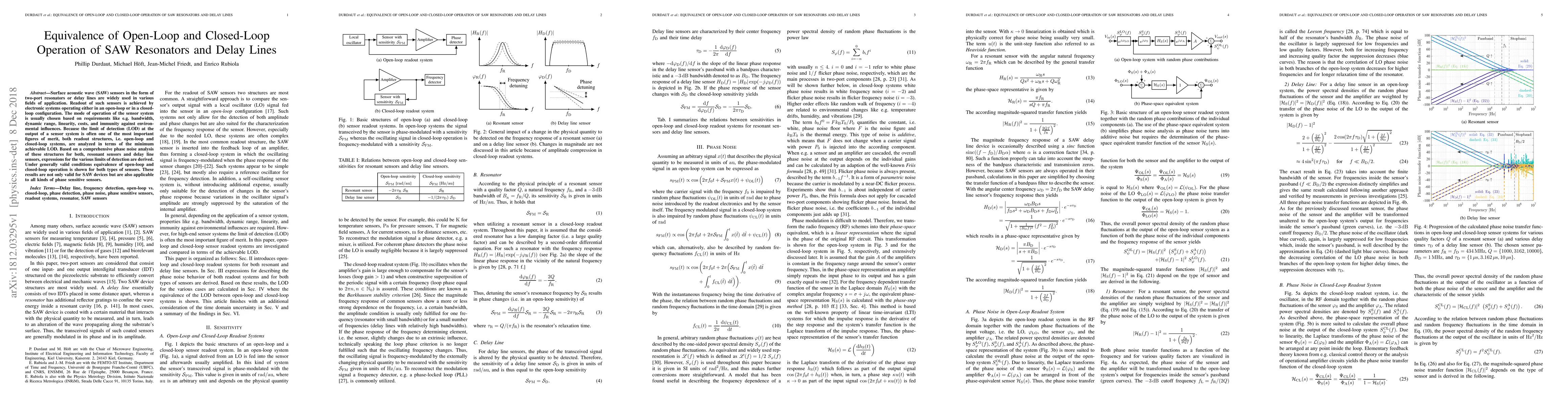 This paper investigates the equivalence of open-loop and closed-loop operation for surface acoustic wave (SAW) resonators and delay lines, demonstrating that both systems can achieve similar limits of detection under general conditions. The study provides expressions for minimum achievable detection limits based on phase noise analysis, applicable to various phase-sensitive sensors.
