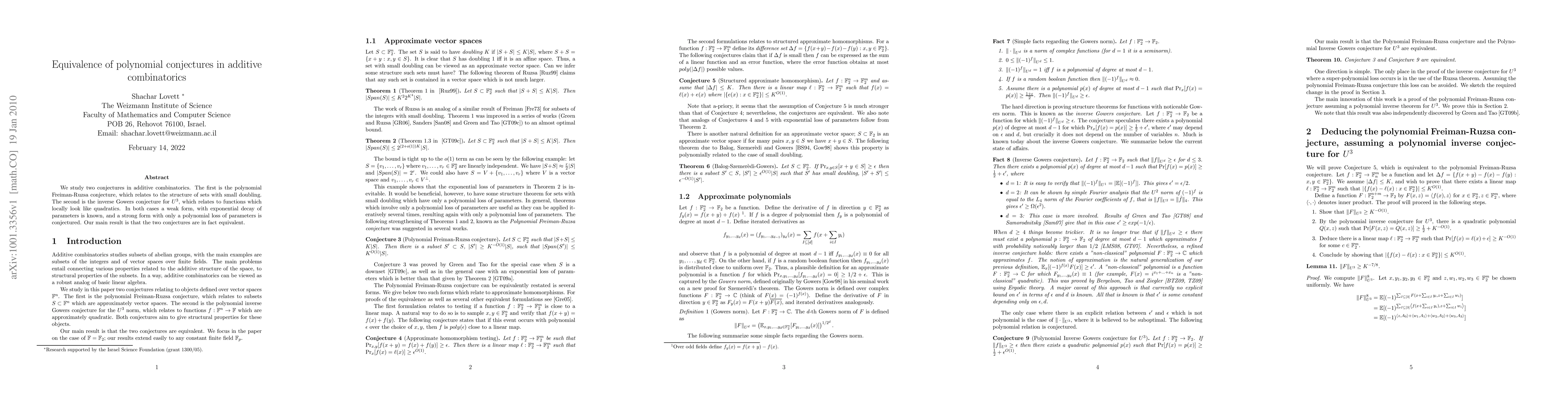 Research shows that two long-standing conjectures in additive combinatorics are equivalent, resolving a decades-long puzzle about the structure of sets with small doubling and functions with specific local properties.