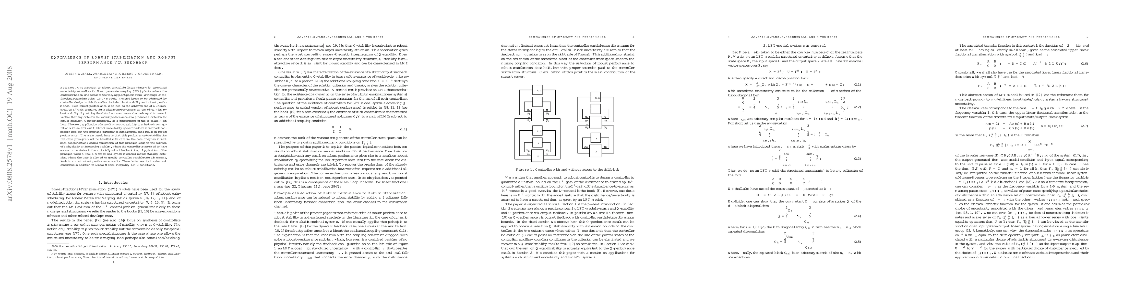 This paper explores the equivalence of robust stabilization and robust performance in linear control systems using linear-fractional-transformation (LFT) models. It demonstrates that robust performance criteria, when applied with care, can yield correct results for dynamic feedback compensation, unlike casual application which leads to physically uninteresting problems.