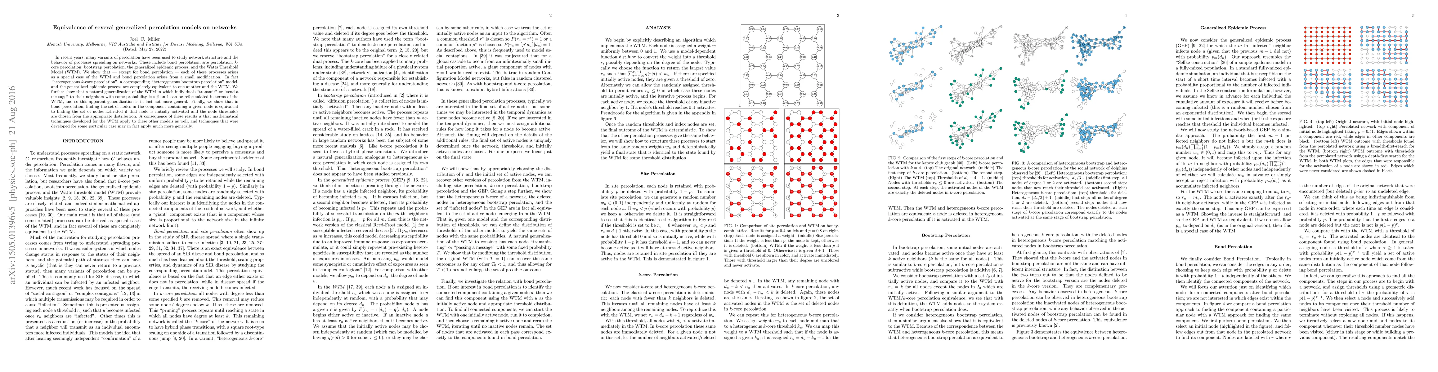 In recent years, many variants of percolation have been used to study network structure and the behavior of processes spreading on networks. These include bond percolation, site percolation, $k$-core percolation, bootstrap percolation, the generalized epidemic process, and the Watts Threshold Model (WTM). We show that --- except for bond percolation --- each of these processes arises as a special case of the WTM and bond percolation arises from a small modification. In fact "heterogeneous $k$-core percolation", a corresponding "heterogeneous bootstrap percolation" model, and the generalized epidemic process are completely equivalent to one another and the WTM. We further show that a natural generalization of the WTM in which individuals "transmit" or "send a message" to their neighbors with some probability less than $1$ can be reformulated in terms of the WTM, and so this apparent generalization is in fact not more general. Finally, we show that in bond percolation, finding the set of nodes in the component containing a given node is equivalent to finding the set of nodes activated if that node is initially activated and the node thresholds are chosen from the appropriate distribution. A consequence of these results is that mathematical techniques developed for the WTM apply to these other models as well, and techniques that were developed for some particular case may in fact apply much more generally.