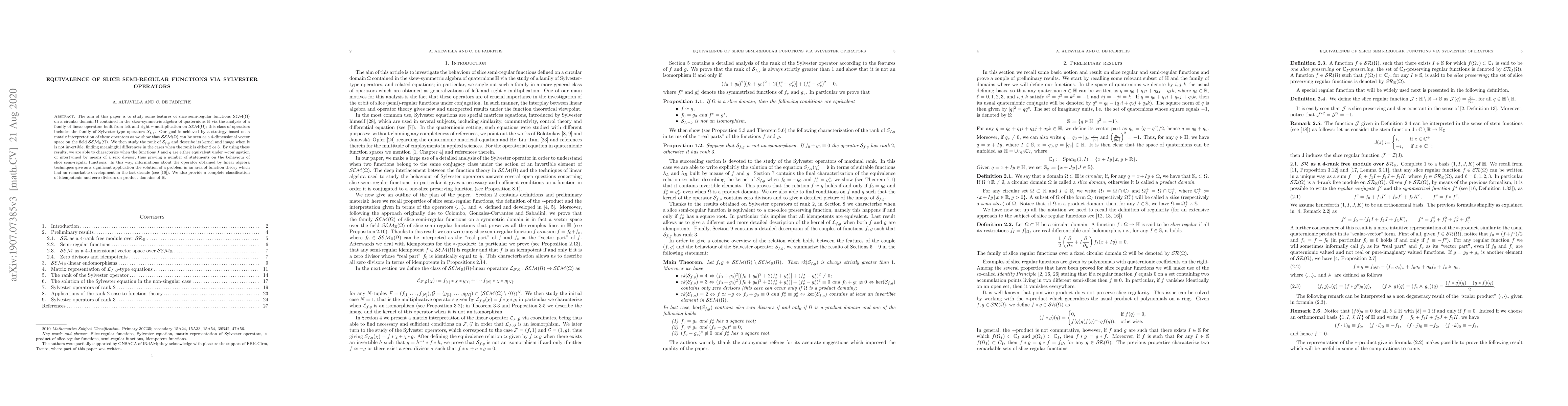 This paper explores the properties of slice semi-regular functions on circular domains in the quaternion skew-symmetric algebra using Sylvester operators. It provides a matrix interpretation of these operators and classifies idempotents and zero divisors, ultimately characterizing the equivalence of such functions.