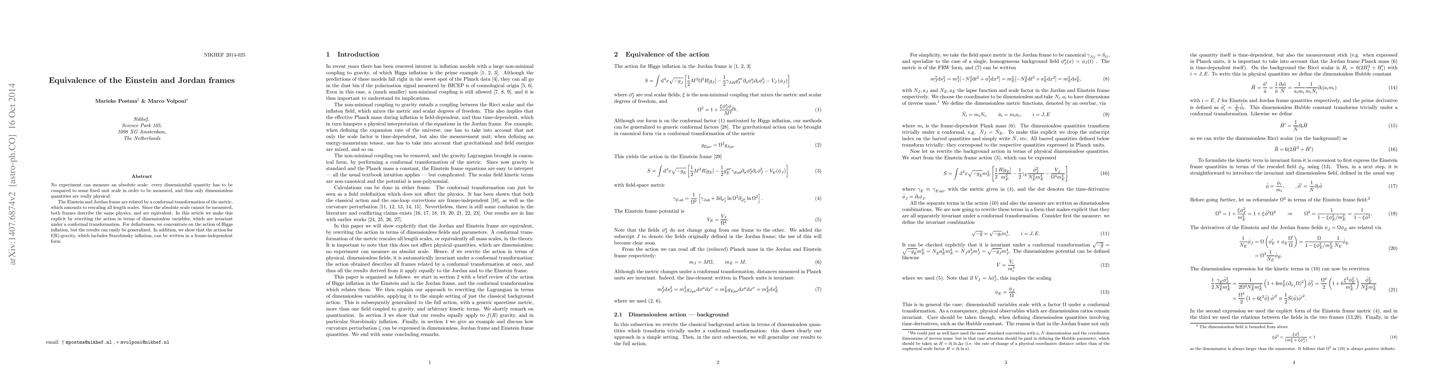 This paper demonstrates that the Einstein and Jordan frames, related by a conformal transformation, describe equivalent physics due to the inability to measure absolute scales. It rewrites the Higgs inflation action in dimensionless variables invariant under conformal transformations, showing generalizability to f(R)-gravity, including Starobinsky inflation.