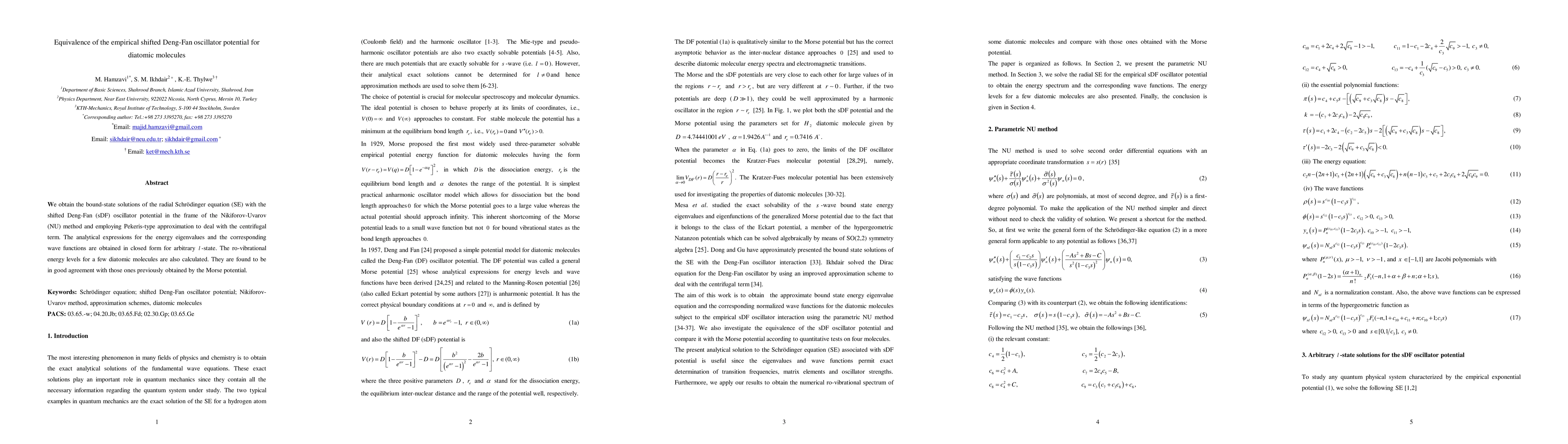 This paper derives analytical solutions for the shifted Deng-Fan oscillator potential using the Nikiforov-Uvarov method and Pekeris approximation, obtaining closed-form expressions for energy eigenvalues and wave functions for arbitrary states. The calculated ro-vibrational energy levels for several diatomic molecules align well with those from the Morse potential.