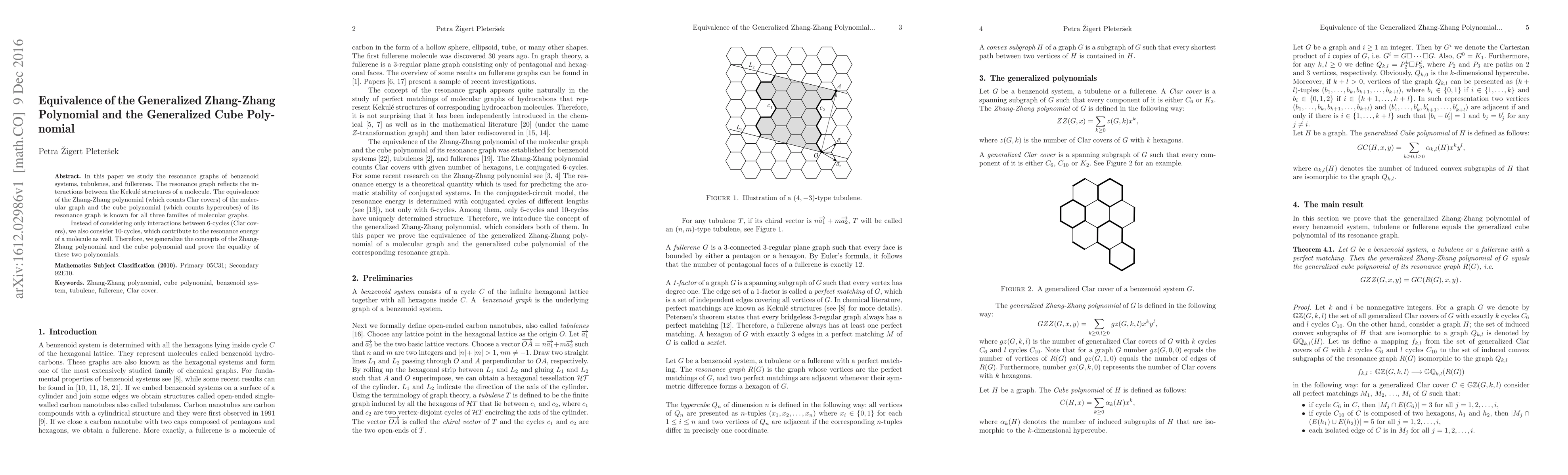Researchers prove that a mathematical polynomial describing molecular interactions is equivalent to another polynomial in resonance graphs of molecules like benzenoids, tubulenes, and fullerenes.