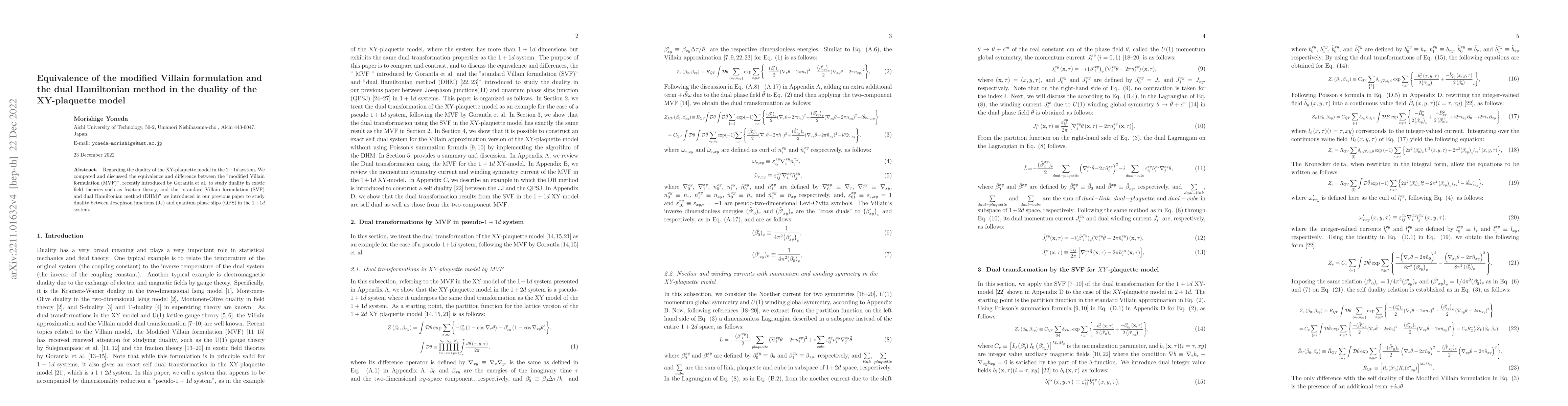 Regarding the duality of the XY-plaquette model in the $2+1d$ system, We compared and discussed the equivalence and difference between the modified Villain formulation, recently introduced by Gorantla et al. to study duality in exotic field theories such as fracton theory, and the standard Villain formulation and dual Hamiltonian method we introduced in our previous paper to study duality between Josephson junctions and quantum phase slips in the $1+1d$ system.