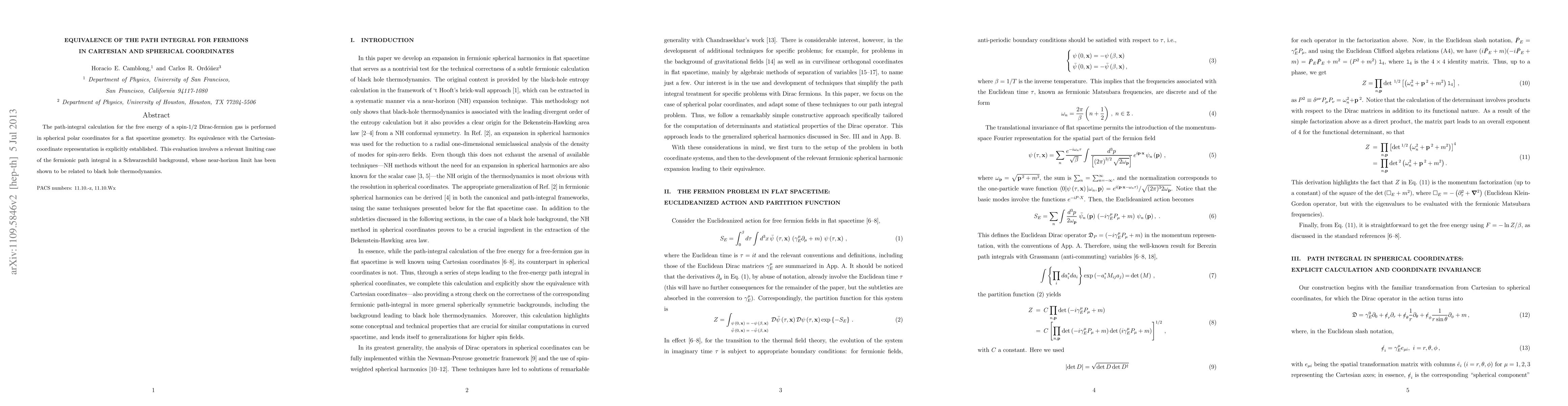 The path-integral calculation for a spin-1/2 Dirac-fermion gas in spherical coordinates is shown to be equivalent to its Cartesian-coordinate representation, with implications for black hole thermodynamics.