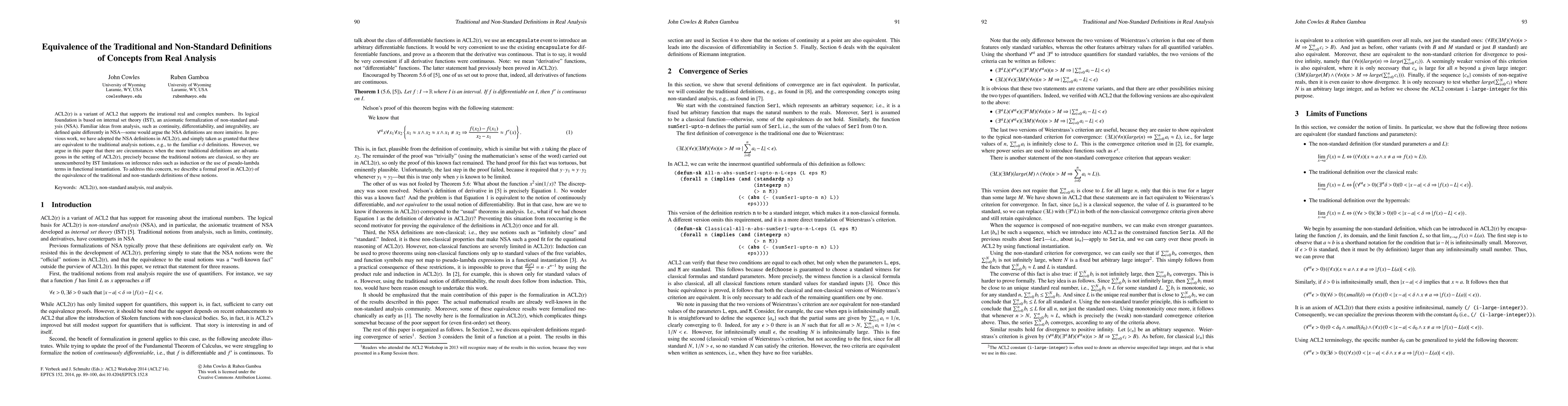 This paper presents a formal proof in ACL2(r) demonstrating the equivalence of traditional and non-standard definitions of concepts from real analysis, arguing that traditional definitions can sometimes be more advantageous due to their classical nature and lack of limitations from internal set theory.