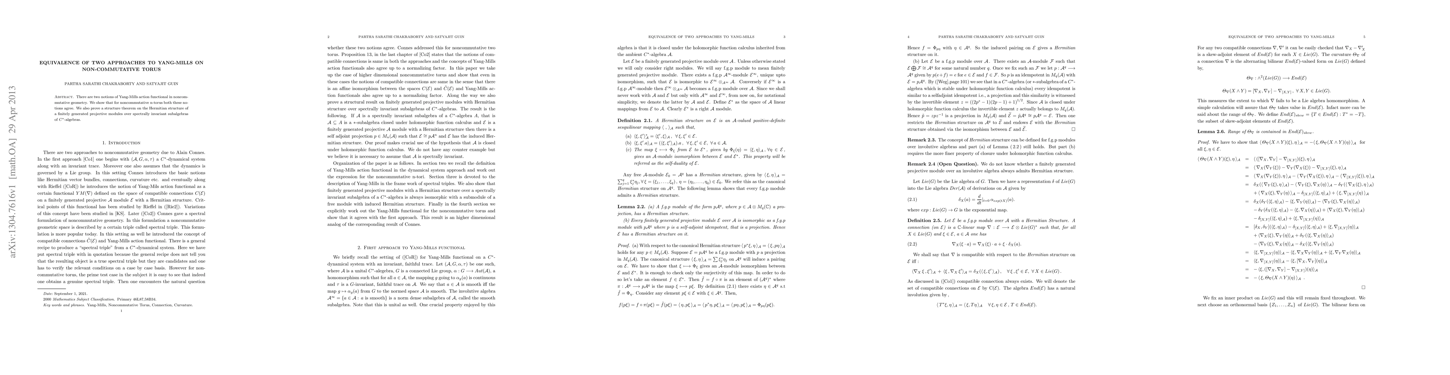 There are two notions of Yang-Mills action functional in noncommutative geometry. We show that for noncommutative n-torus both these notions agree. We also prove a structure theorem on the Hermitian structure of a finitely generated projective modules over spectrally invariant subalgebras of $C^*$-algebras.