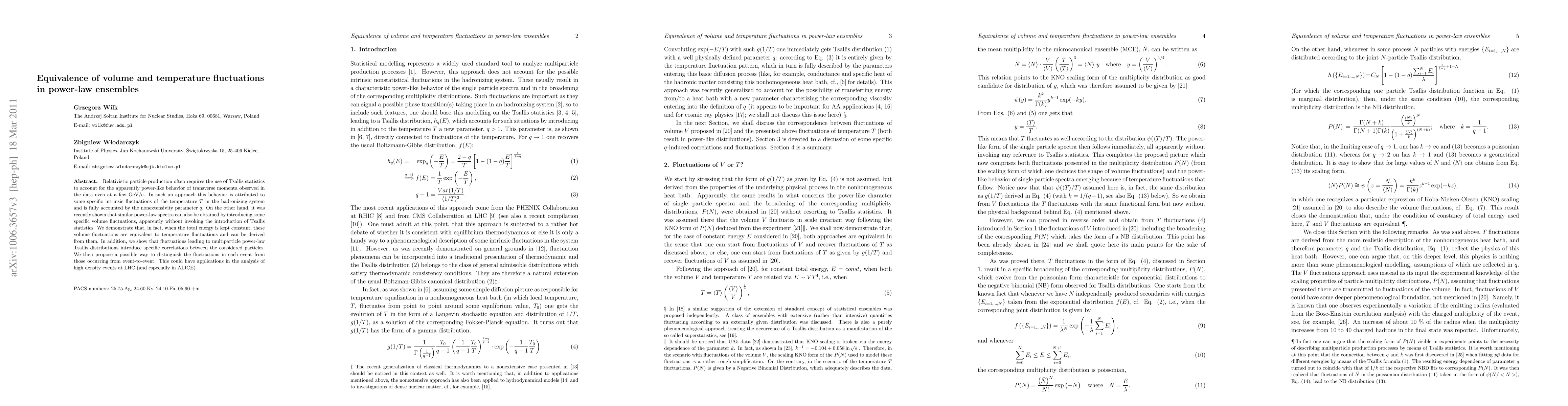 Research shows that volume fluctuations in a hadronizing system can produce power-law spectra similar to those attributed to temperature fluctuations, and these fluctuations may introduce correlations between particles.