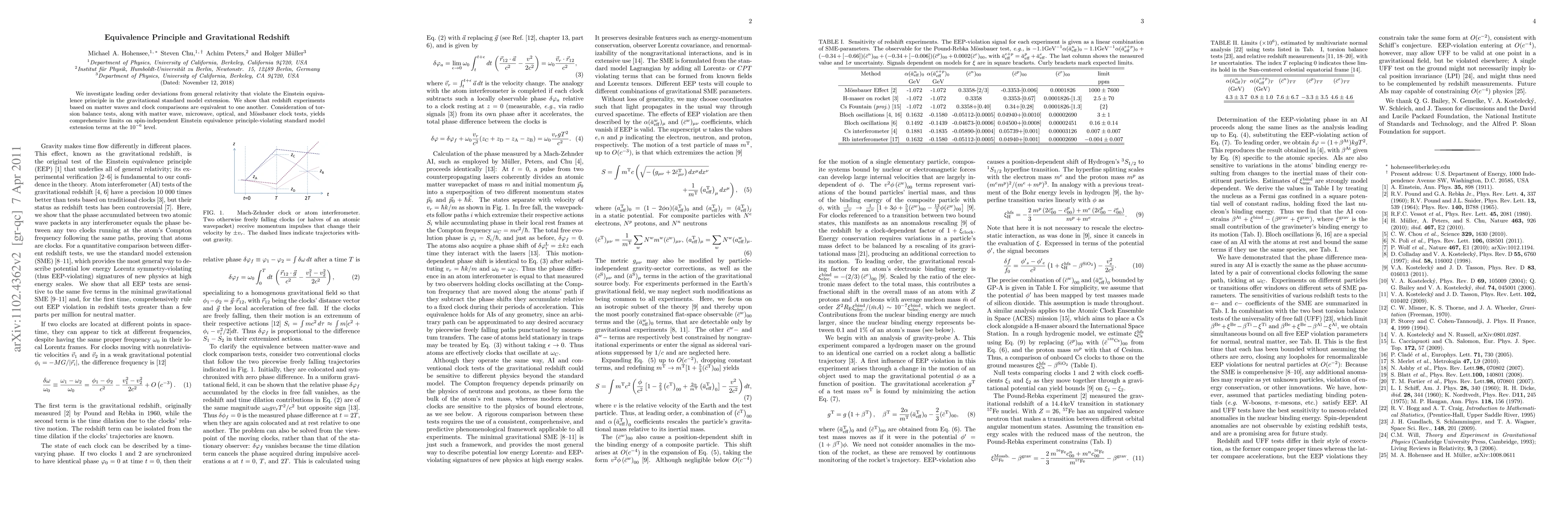 We investigate leading order deviations from general relativity that violate the Einstein equivalence principle in the gravitational standard model extension. We show that redshift experiments based on matter waves and clock comparisons are equivalent to one another. Consideration of torsion balance tests, along with matter wave, microwave, optical, and M\"ossbauer clock tests, yields comprehensive limits on spin-independent Einstein equivalence principle-violating standard model extension terms at the $10^{-6}$ level.