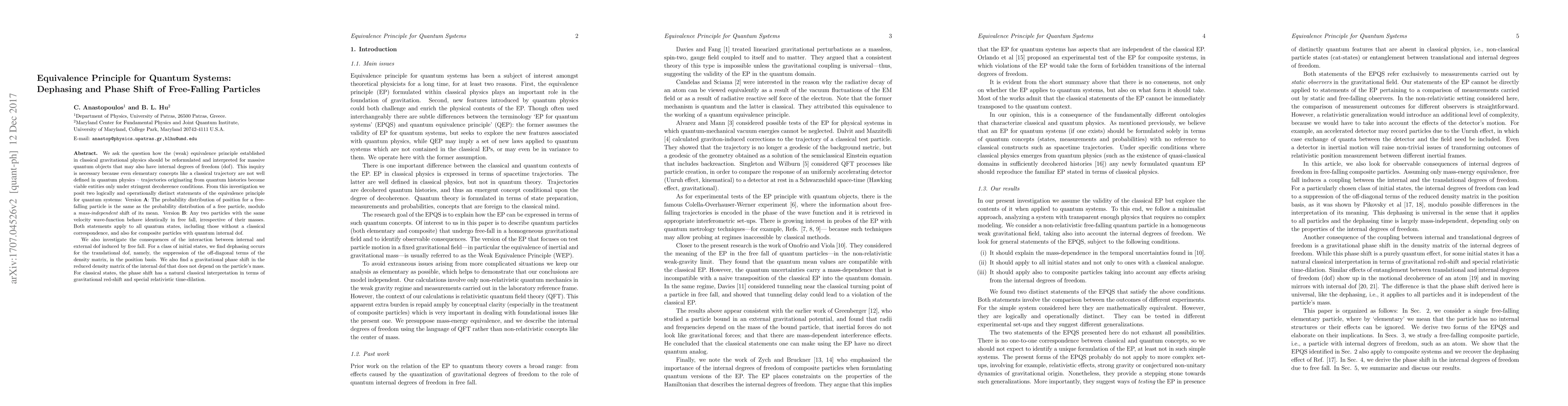 This paper reformulates the equivalence principle for quantum systems, proposing two distinct versions: Version A and Version B, which describe the behavior of free-falling quantum particles. It also investigates the dephasing and gravitational phase shift effects on quantum particles' internal and translational degrees of freedom during free fall.