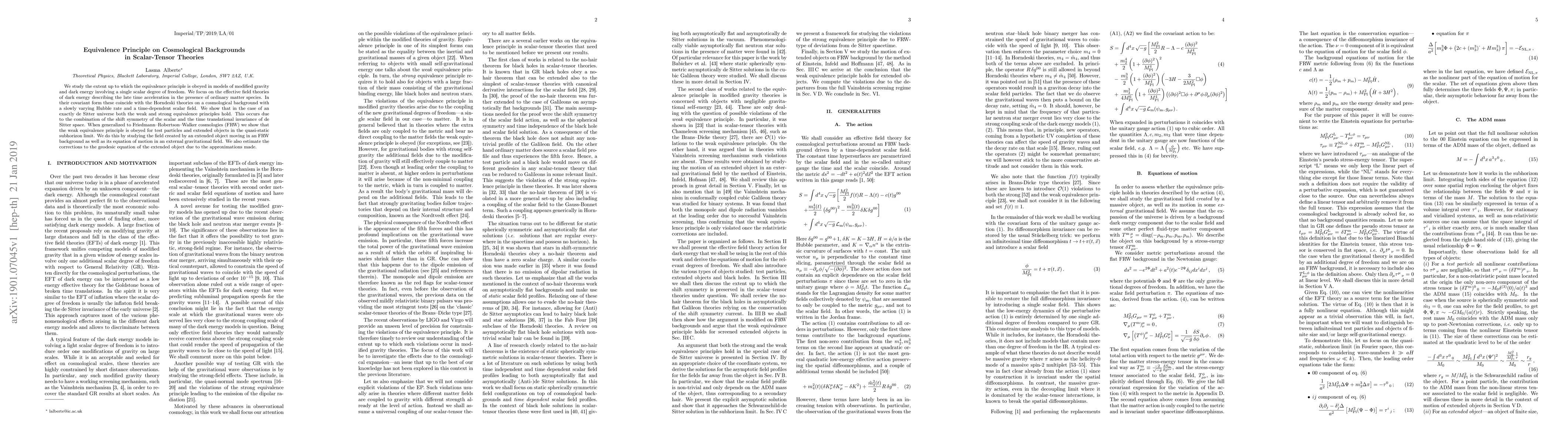 This paper investigates the equivalence principle in scalar-tensor theories of modified gravity, showing that both the weak and strong principles hold in de Sitter universes. For generalized Friedmann-Robertson-Walker cosmologies, the weak equivalence principle is upheld for test particles and extended objects in the quasi-static subhorizon limit.