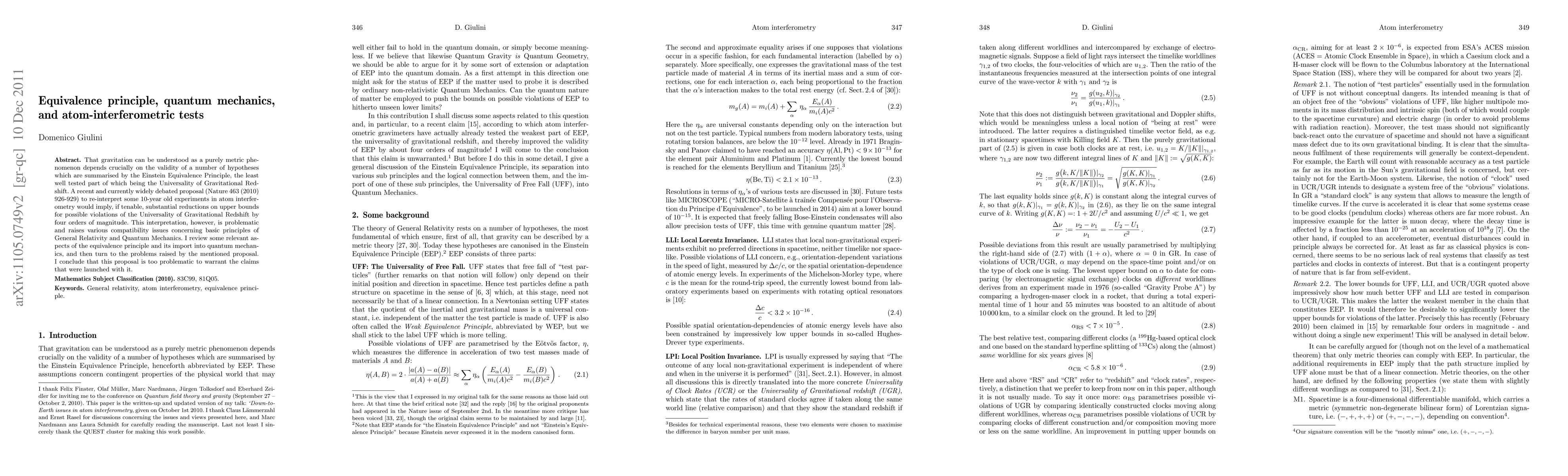 This paper reviews the Einstein Equivalence Principle and its implications for quantum mechanics, focusing on the Universality of Gravitational Redshift. It critiques a recent proposal to reinterpret atom-interferometry experiments, arguing that the proposal is problematic and raises significant compatibility issues with General Relativity and Quantum Mechanics, ultimately deeming it unconvincing.