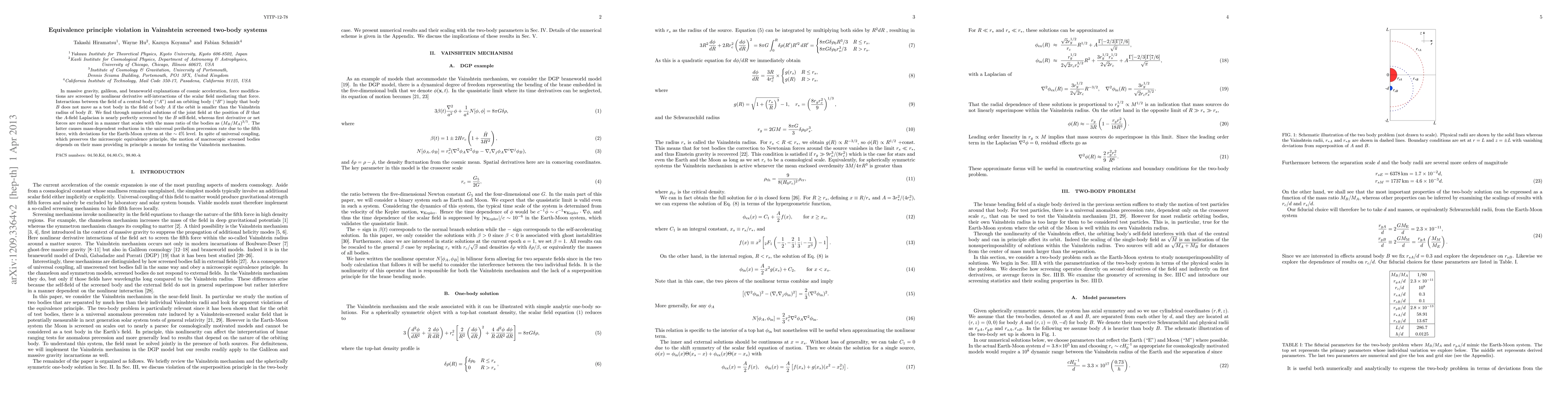 In massive gravity, galileon, and braneworld explanations of cosmic acceleration, force modifications are screened by nonlinear derivative self-interactions of the scalar field mediating that force. Interactions between the field of a central body ("A") and an orbiting body ("B") imply that body B does not move as a test body in the field of body A if the orbit is smaller than the Vainshtein radius of body B. We find through numerical solutions of the joint field at the position of B that the A-field Laplacian is nearly perfectly screened by the B self-field, whereas first derivative or net forces are reduced in a manner that scales with the mass ratio of the bodies as (M_B/M_A)^{3/5}. The latter causes mass-dependent reductions in the universal perihelion precession rate, with deviations for the Earth-Moon system at the ~4% level. In spite of universal coupling, which preserves the microscopic equivalence principle, the motion of macroscopic screened bodies depends on their mass providing in principle a means for testing the Vainshtein mechanism.