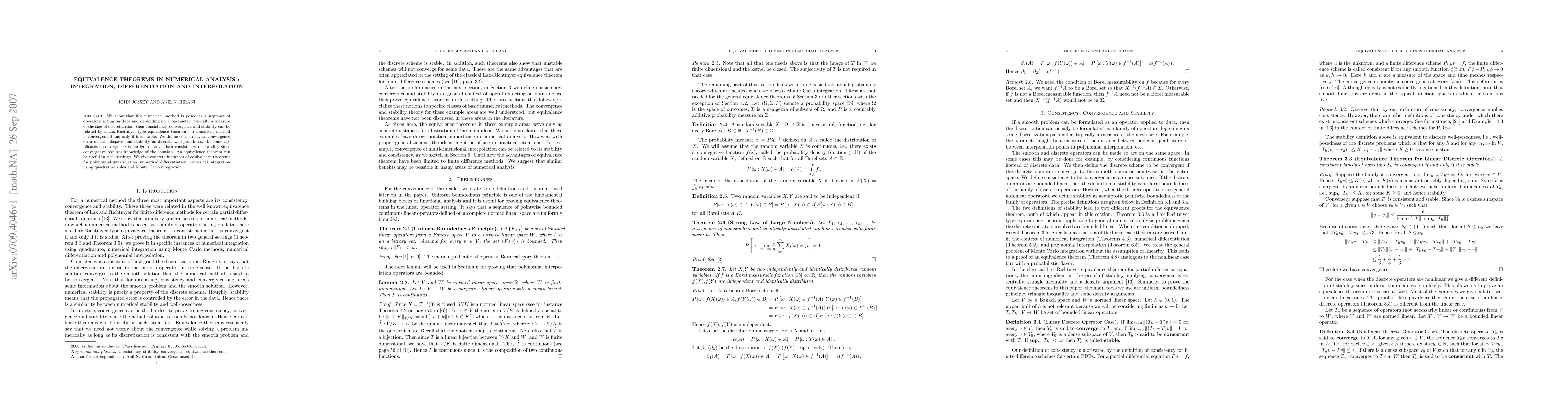 This paper establishes Lax-Richtmyer type equivalence theorems for numerical methods in integration, differentiation, and interpolation, showing that consistency implies convergence if stability holds. It provides concrete examples for polynomial interpolation, numerical differentiation, quadrature rules, and Monte Carlo integration.