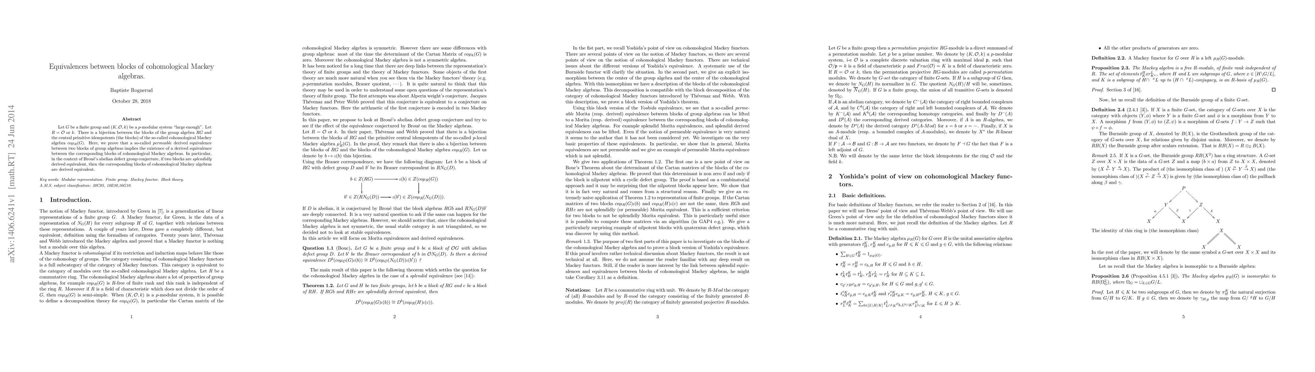 This paper establishes a bijection between the blocks of the group algebra $RG$ and the blocks of the cohomological Mackey algebra $co\mu_{R}(G)$, proving that a permeable derived equivalence between two group algebra blocks implies a derived equivalence between the corresponding cohomological Mackey algebra blocks. This result supports Broué's abelian defect group conjecture in the context of splendid derived equivalences.