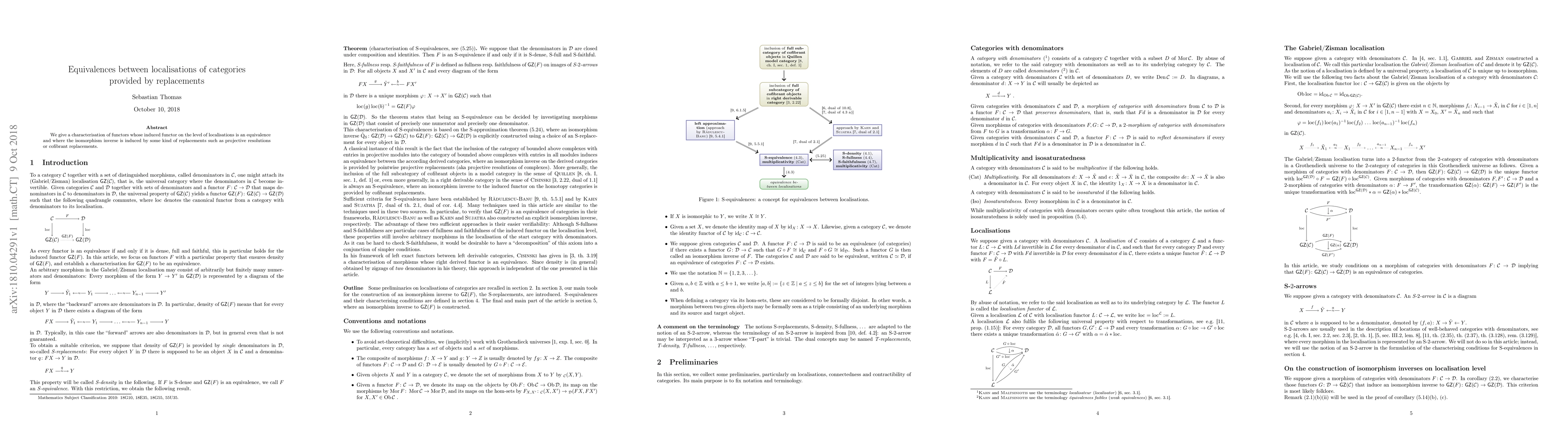 We give a characterisation of functors whose induced functor on the level of localisations is an equivalence and where the isomorphism inverse is induced by some kind of replacements such as projective resolutions or cofibrant replacements.