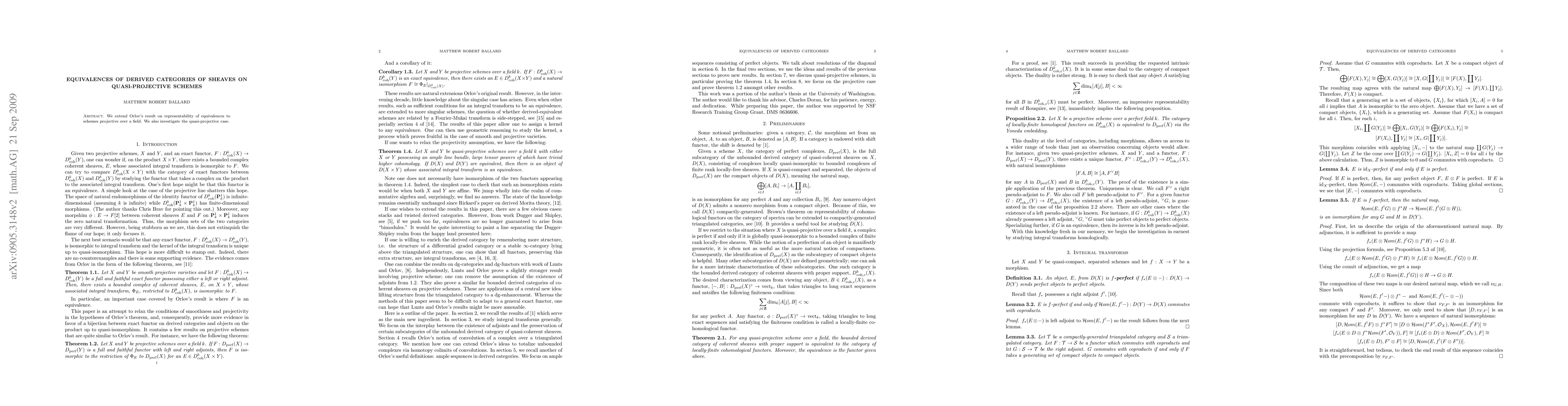 Summary: This paper extends Orlov's theorem on equivalences of derived categories to quasi-projective schemes, providing a deeper understanding of representability in this broader context. It investigates the quasi-projective case alongside projective schemes over a field.