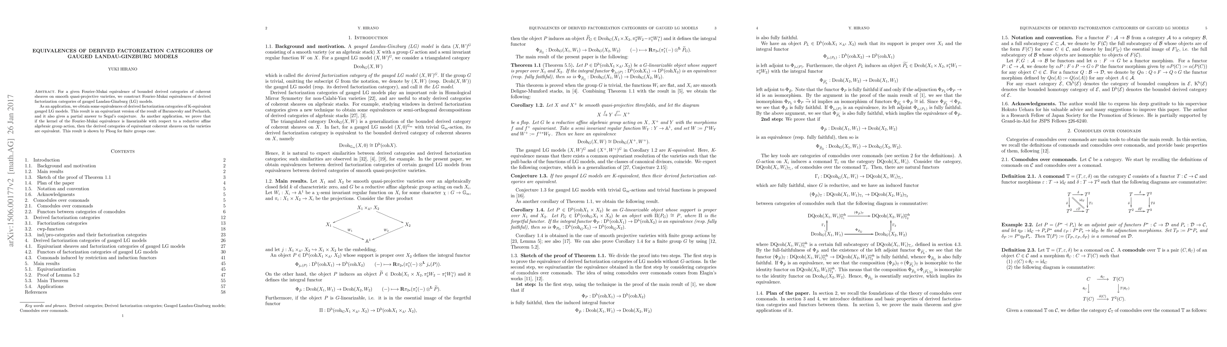 This paper constructs Fourier-Mukai equivalences for derived factorization categories of gauged Landau-Ginzburg models, demonstrating their equivalence for K-equivalent models and providing an equivariant version of Baranovsky and Pecharich's result. Additionally, it proves that linearizable kernels yield equivalent derived categories of equivariant coherent sheaves.