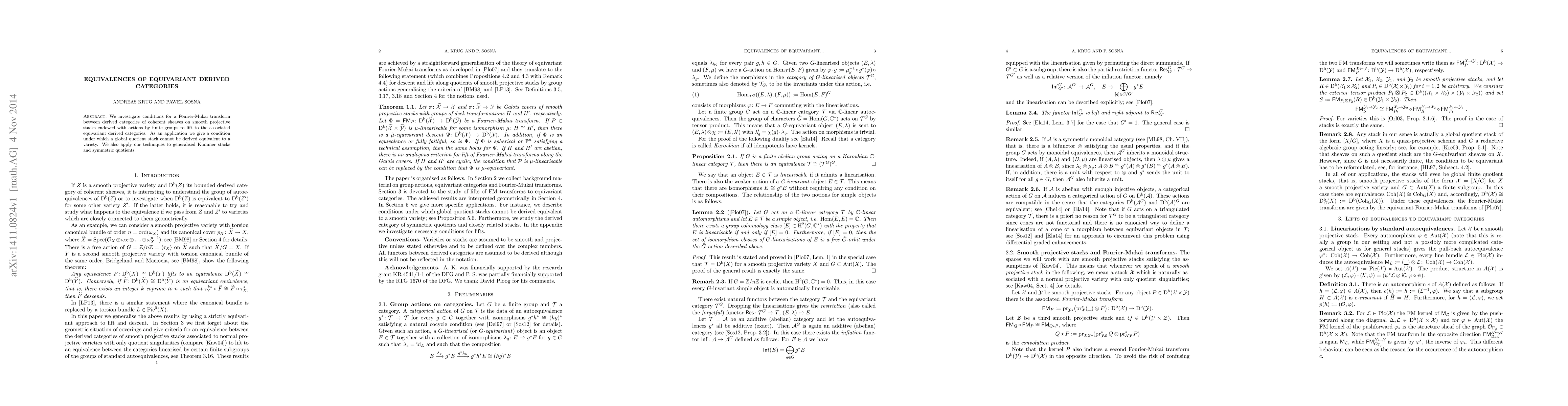This paper explores conditions for Fourier-Mukai transforms between derived categories of coherent sheaves on smooth projective stacks to extend to equivariant derived categories, providing a condition for global quotient stacks not to be derived equivalent to varieties, and applying these techniques to generalised Kummer stacks and symmetric quotients.
