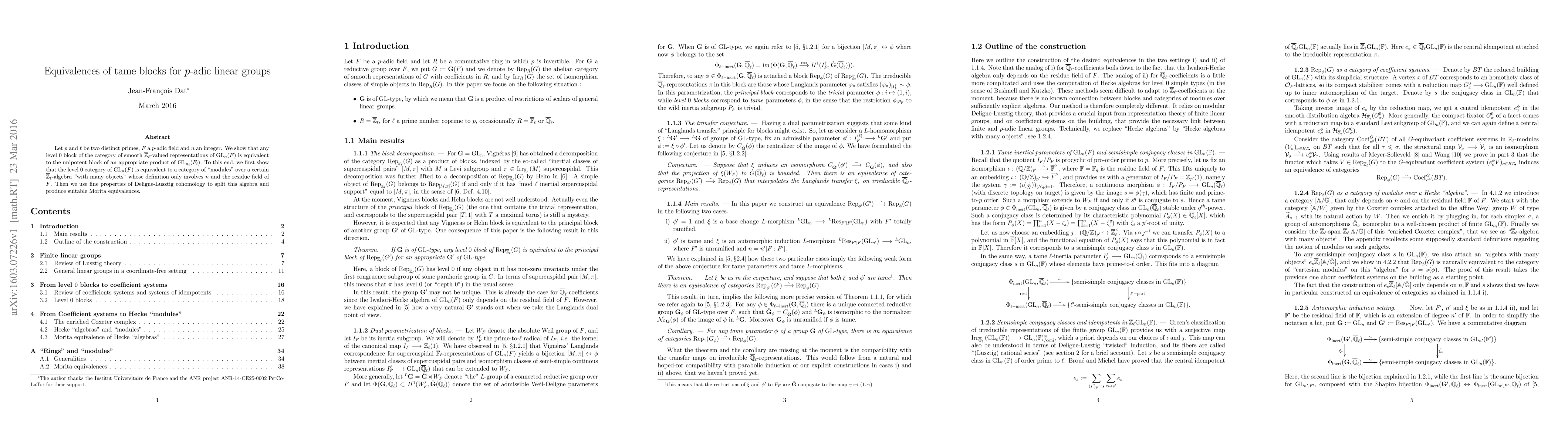This paper demonstrates that level 0 blocks of smooth Z_ℓ-valued representations of GL_n(F) are equivalent to unipotent blocks of products of GL_n_i(F_i). The authors achieve this by establishing an equivalence between the level 0 category of GL_n(F) and a category of "modules" over a Z_ℓ-algebra, then utilizing properties of Deligne-Lusztig cohomology to derive Morita equivalences.