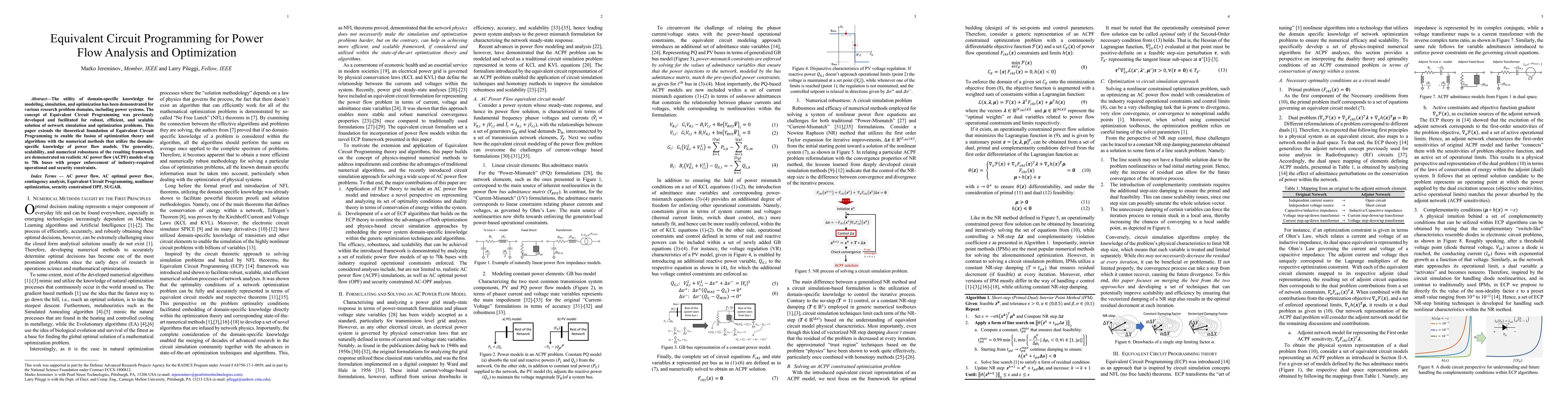 This paper extends Equivalent Circuit Programming to integrate optimization theory with power flow models, demonstrating its scalability and robustness on large AC power flow networks up to 70k buses while enforcing operational and security constraints.