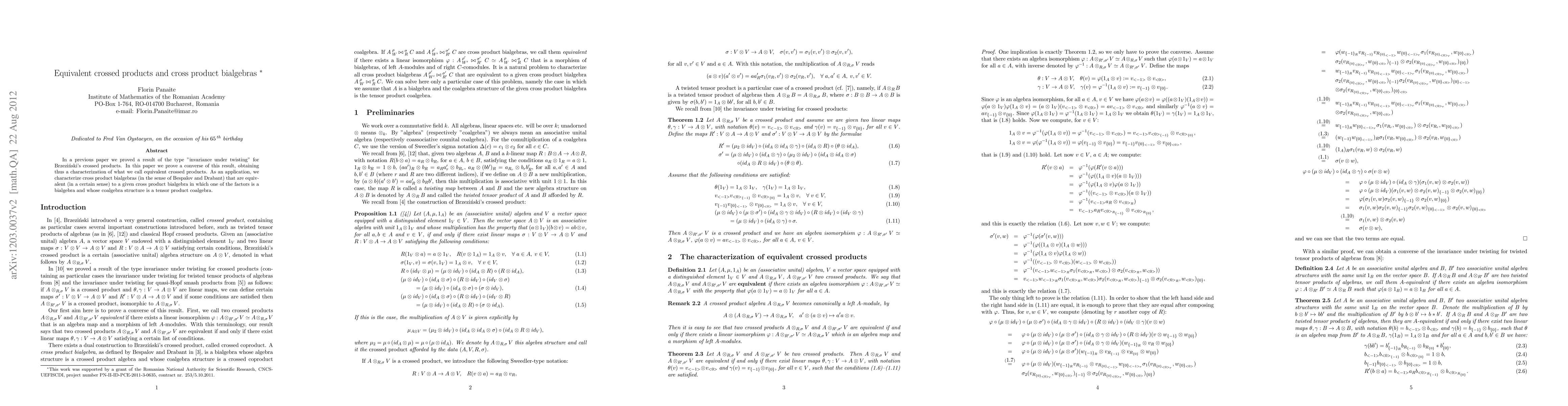In a previous paper we proved a result of the type "invariance under twisting" for Brzezinski's crossed products. In this paper we prove a converse of this result, obtaining thus a characterization of what we call equivalent crossed products. As an application, we characterize cross product bialgebras (in the sense of Bespalov and Drabant) that are equivalent (in a certain sense) to a given cross product bialgebra in which one of the factors is a bialgebra and whose coalgebra structure is a tensor product coalgebra.