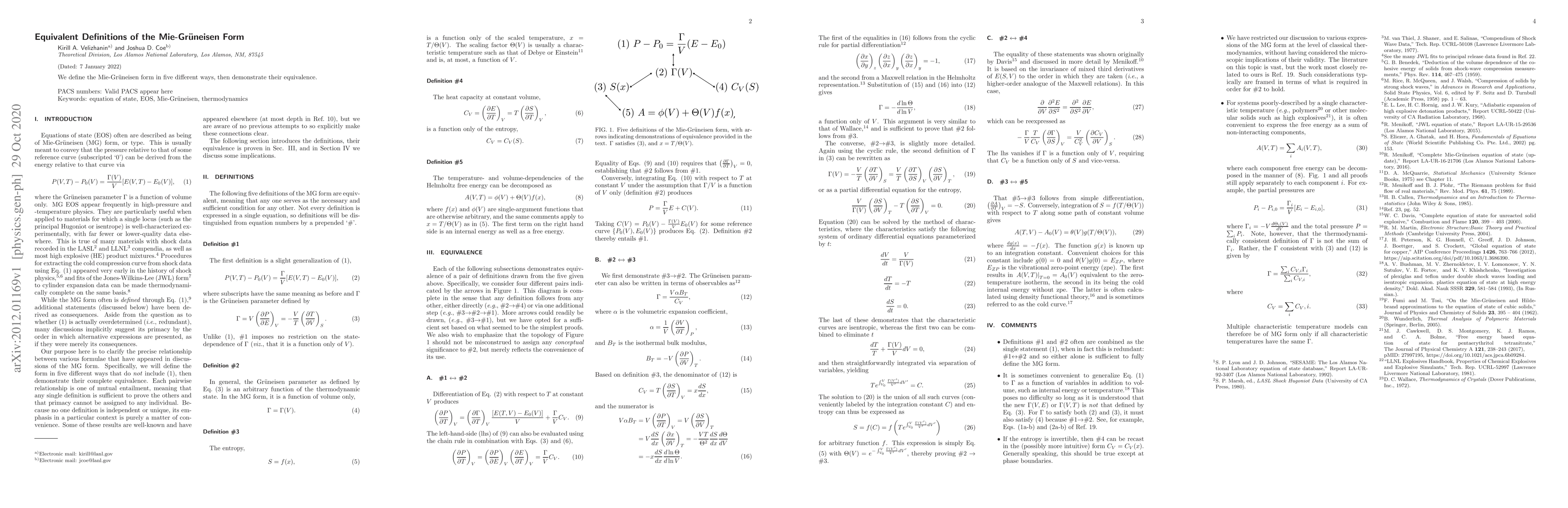 We define the Mie-Gr\"{u}neisen form in five different ways, then demonstrate their equivalence.