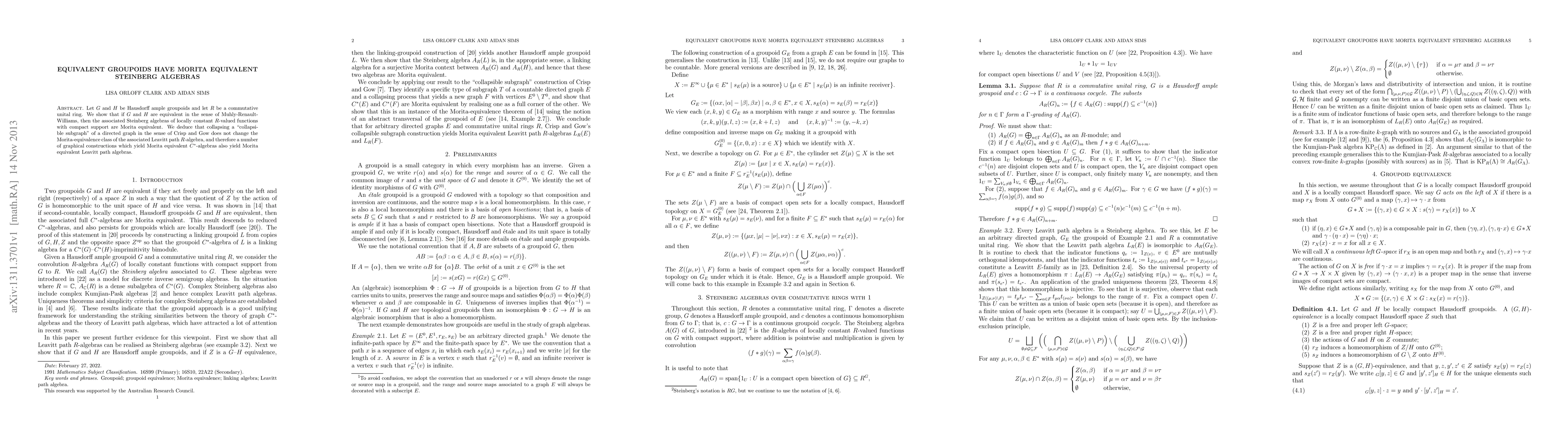 This paper demonstrates that equivalent Hausdorff ample groupoids lead to Morita equivalent Steinberg algebras of locally constant functions. Consequently, collapsing a "collapsible subgraph" in directed graph theory does not alter the Morita-equivalence class of associated Leavitt path algebras.