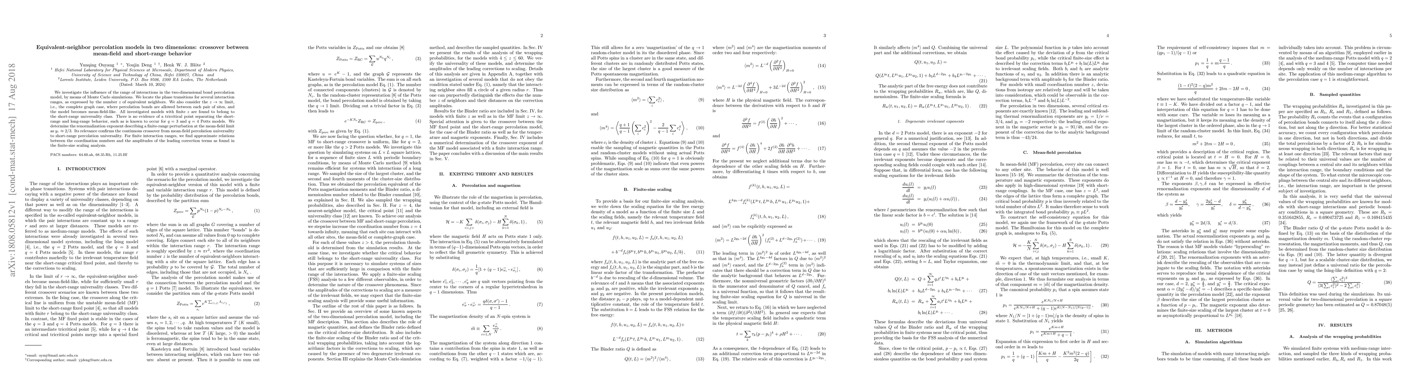 This paper explores the two-dimensional bond percolation model's phase transitions under varying interaction ranges using Monte Carlo simulations. It finds that all finite interaction range models belong to the short-range universality class, with a renormalization exponent of $y_r \approx 2/3$ indicating a crossover from mean-field to short-range behavior.