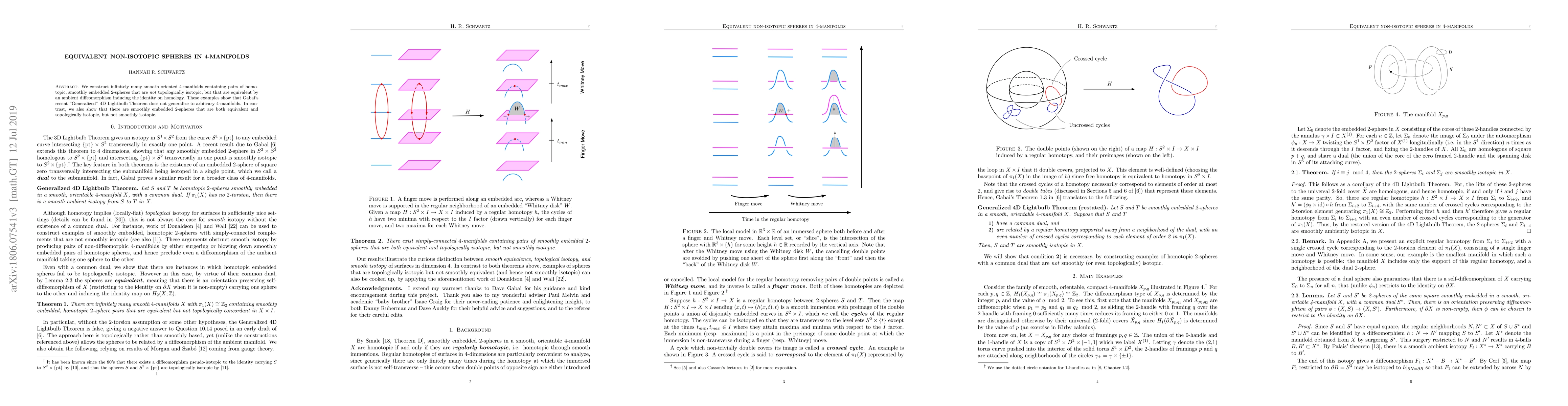 This paper constructs smooth 4-manifolds with pairs of homotopic but non-isotopically equivalent embedded 2-spheres, demonstrating limitations in the generalization of Gabai's 4D Lightbulb Theorem. It also presents cases where 2-spheres are equivalent and isotopically but not smoothly isotopic.