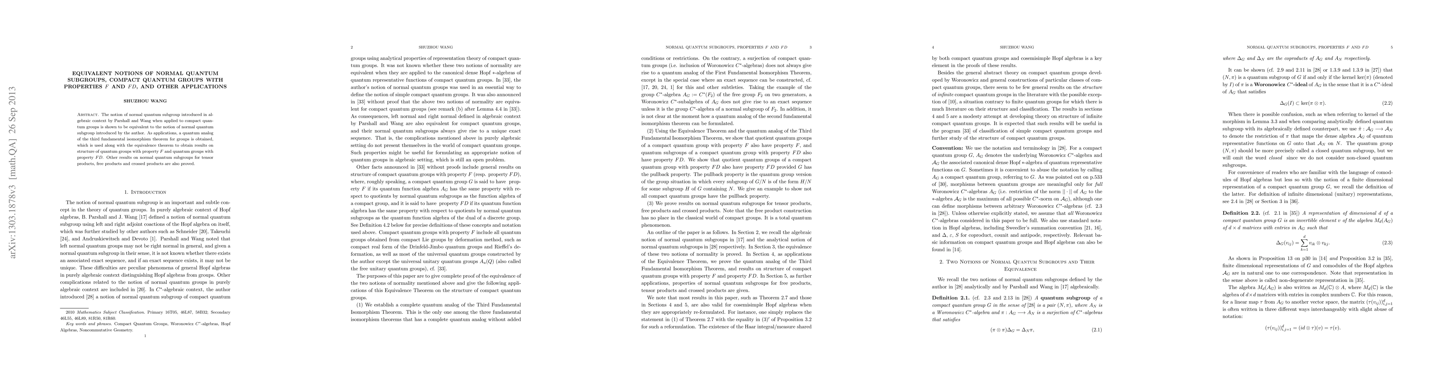 This paper establishes the equivalence of different notions of normal quantum subgroups in compact quantum groups and applies this equivalence to derive a quantum analog of the third fundamental isomorphism theorem. It also explores structural properties of quantum groups with properties F and FD, alongside results on normal quantum subgroups in tensor products, free products, and crossed products.