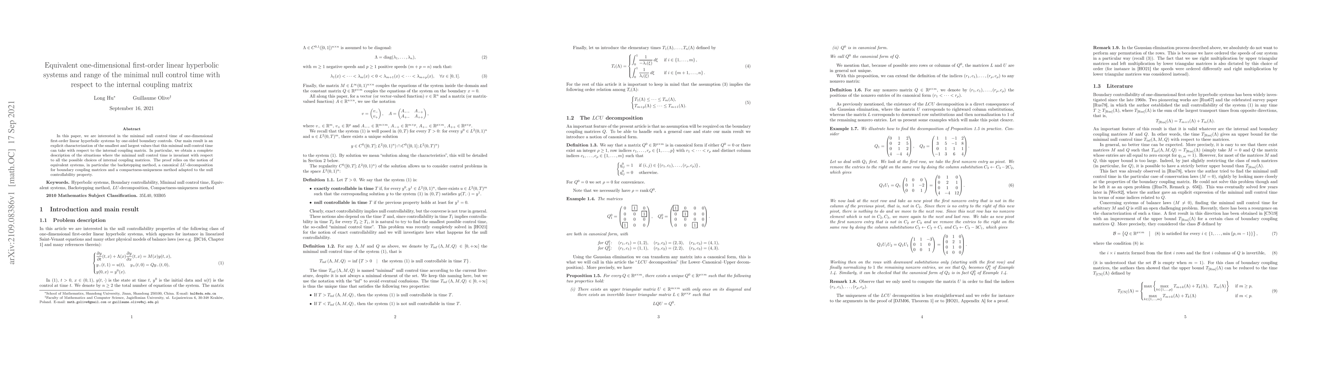 In this paper, we are interested in the minimal null control time of one-dimensional first-order linear hyperbolic systems by one-sided boundary controls. Our main result is an explicit characterization of the smallest and largest values that this minimal null control time can take with respect to the internal coupling matrix. In particular, we obtain a complete description of the situations where the minimal null control time is invariant with respect to all the possible choices of internal coupling matrices. The proof relies on the notion of equivalent systems, in particular the backstepping method, a canonical $LU$-decomposition for boundary coupling matrices and a compactness-uniqueness method adapted to the null controllability property.