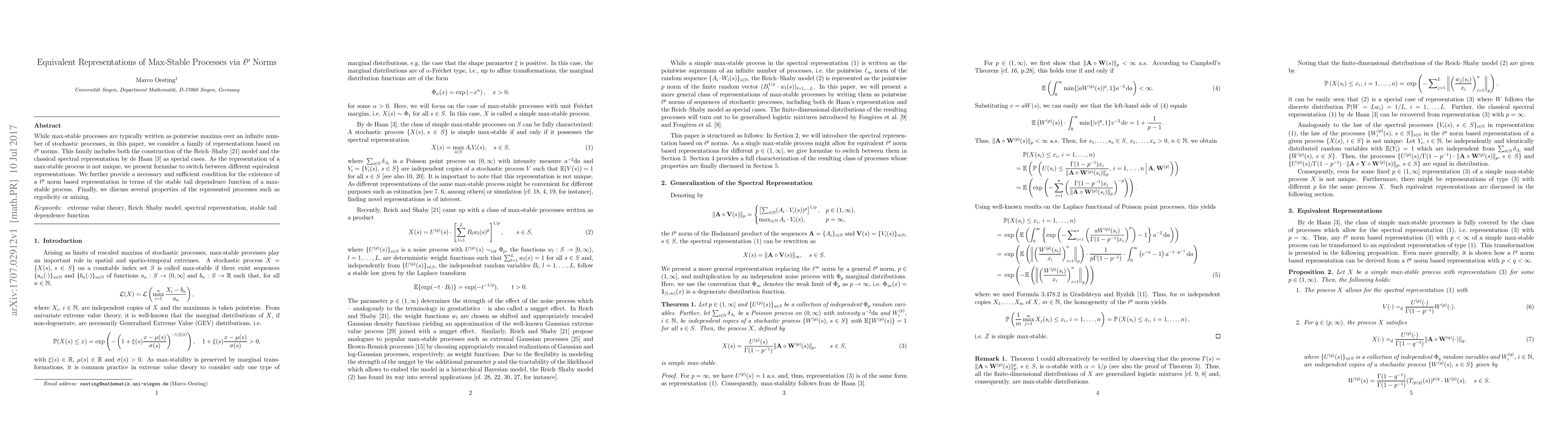 This paper explores equivalent representations of max-stable processes using $\ell^p$ norms, encompassing the Reich-Shaby model and de Haan's spectral representation. It provides formulas to transition between different representations and establishes a necessary and sufficient condition for $\ell^p$ norm-based representations based on the stable tail dependence function.