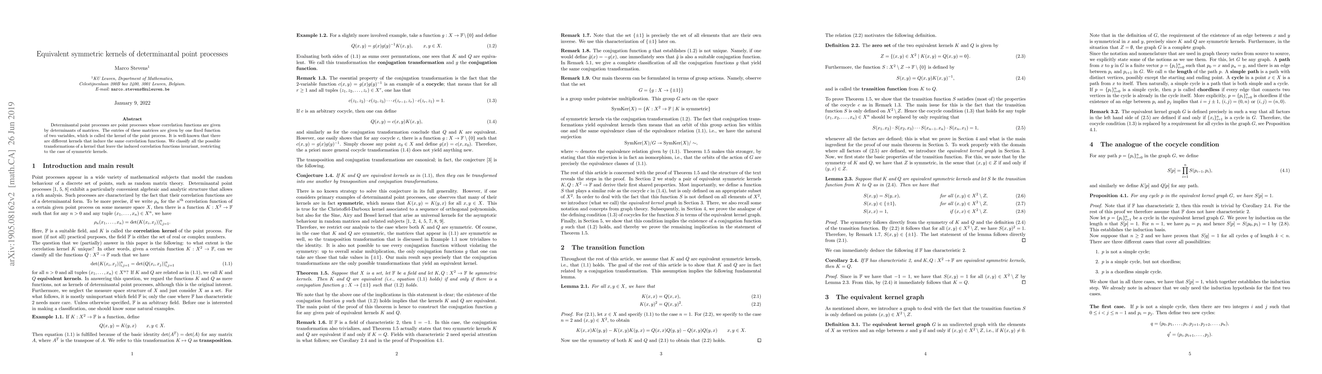 This paper classifies transformations that leave the correlation functions of symmetric determinantal point processes invariant, identifying equivalent kernels that induce the same point process. The focus is on symmetric kernels and their equivalent forms.