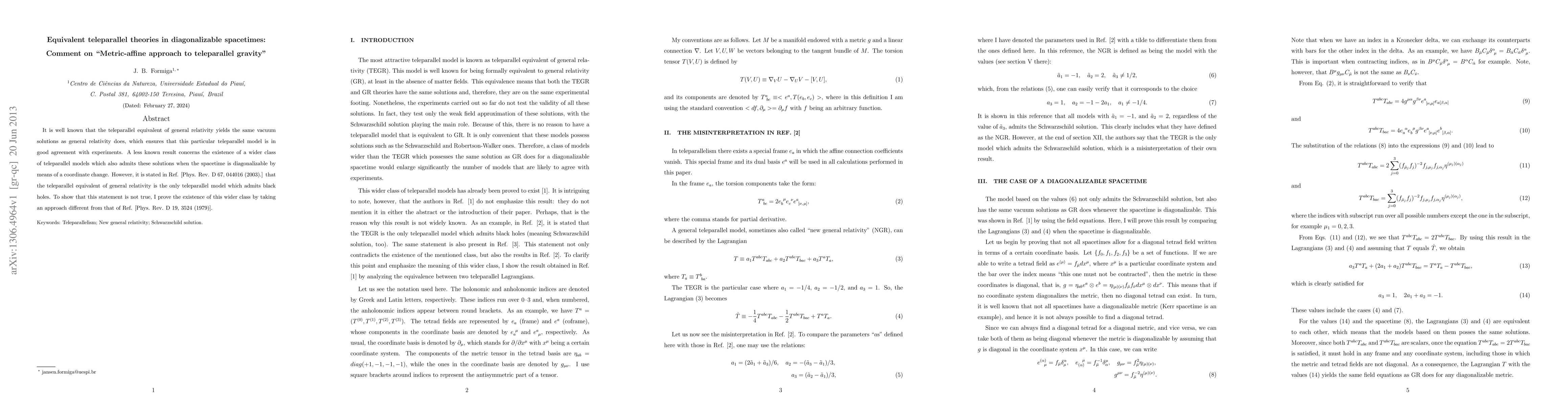 Researchers prove that a wider class of teleparallel gravity theories exists beyond the general relativity equivalent, allowing for black holes in diagonalizable spacetimes.