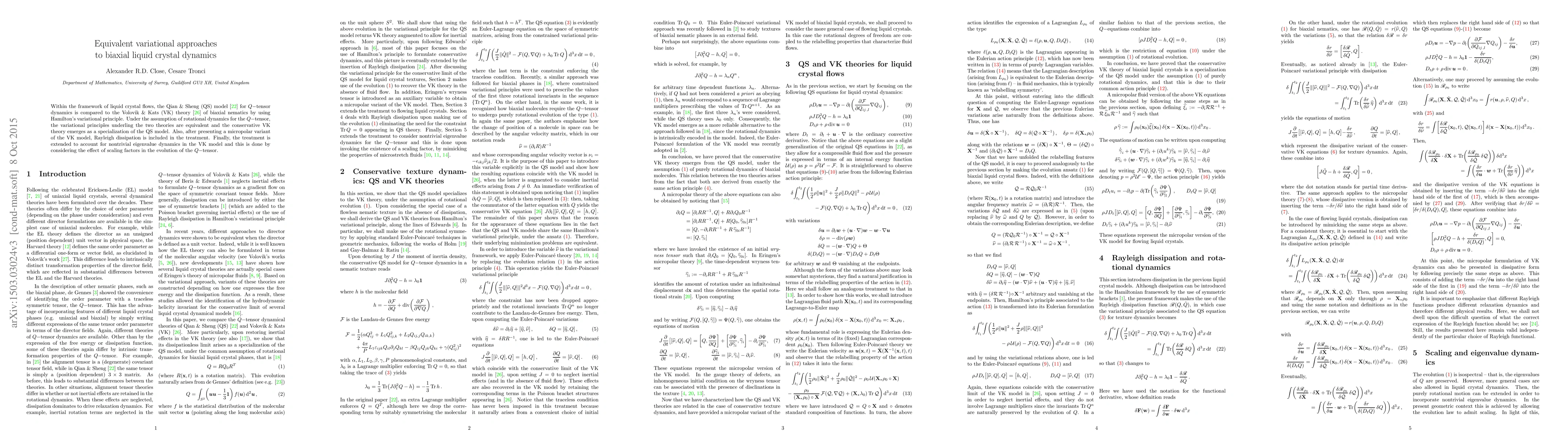 Researchers show that a biaxial liquid crystal dynamics model based on Hamilton's variational principle is equivalent to an existing theory, revealing new insights into the behavior of these complex systems.
