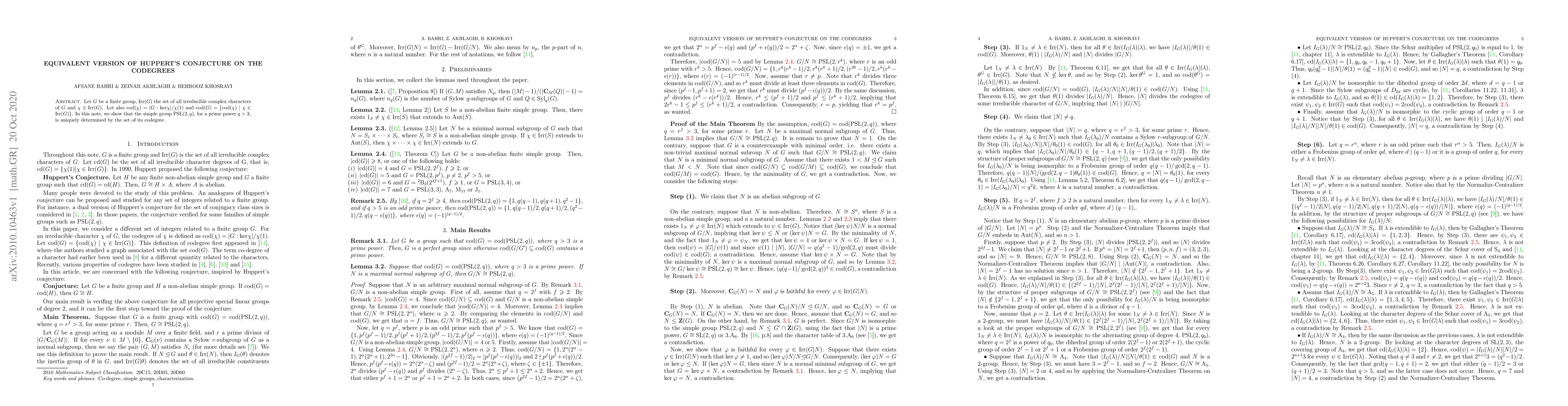 The paper shows that the simple group PSL(2, q) is uniquely determined by its set of codegrees, a measure of its irreducible characters' complexity, for prime power q > 3.