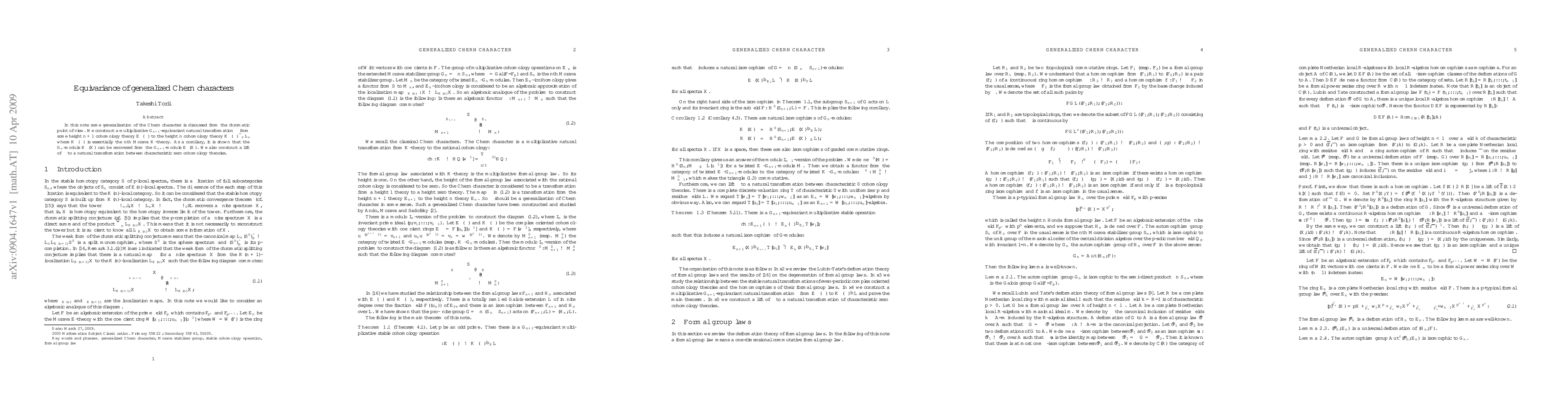 In this note some generalization of the Chern character is discussed from the chromatic point of view. We construct a multiplicative G_{n+1}-equivariant natural transformation \Theta from some height (n+1) cohomology theory E^*(-) to the height n cohomology theory K^*(-)\hat{\otimes}_F L, where K^*(-) is essentially the n-th Morava K-theory. As a corollary, it is shown that the G_n-module K^*(X) can be recovered from the G_{n+1}-module E^*(X). We also construct a lift of \Theta to a natural transformation between characteristic zero cohomology theories.