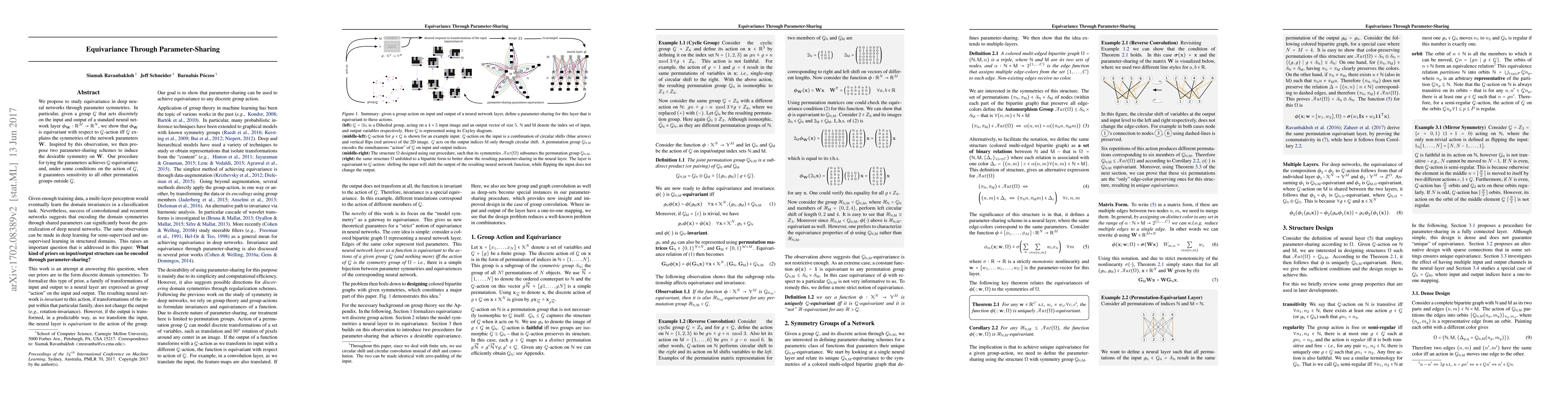 This paper proposes a method to achieve equivariance in deep neural networks by leveraging parameter symmetries. It introduces two parameter-sharing schemes that enforce the desired symmetry on network parameters, thereby achieving $\mathcal{G}$-equivariance and sensitivity to other permutation groups under certain conditions.